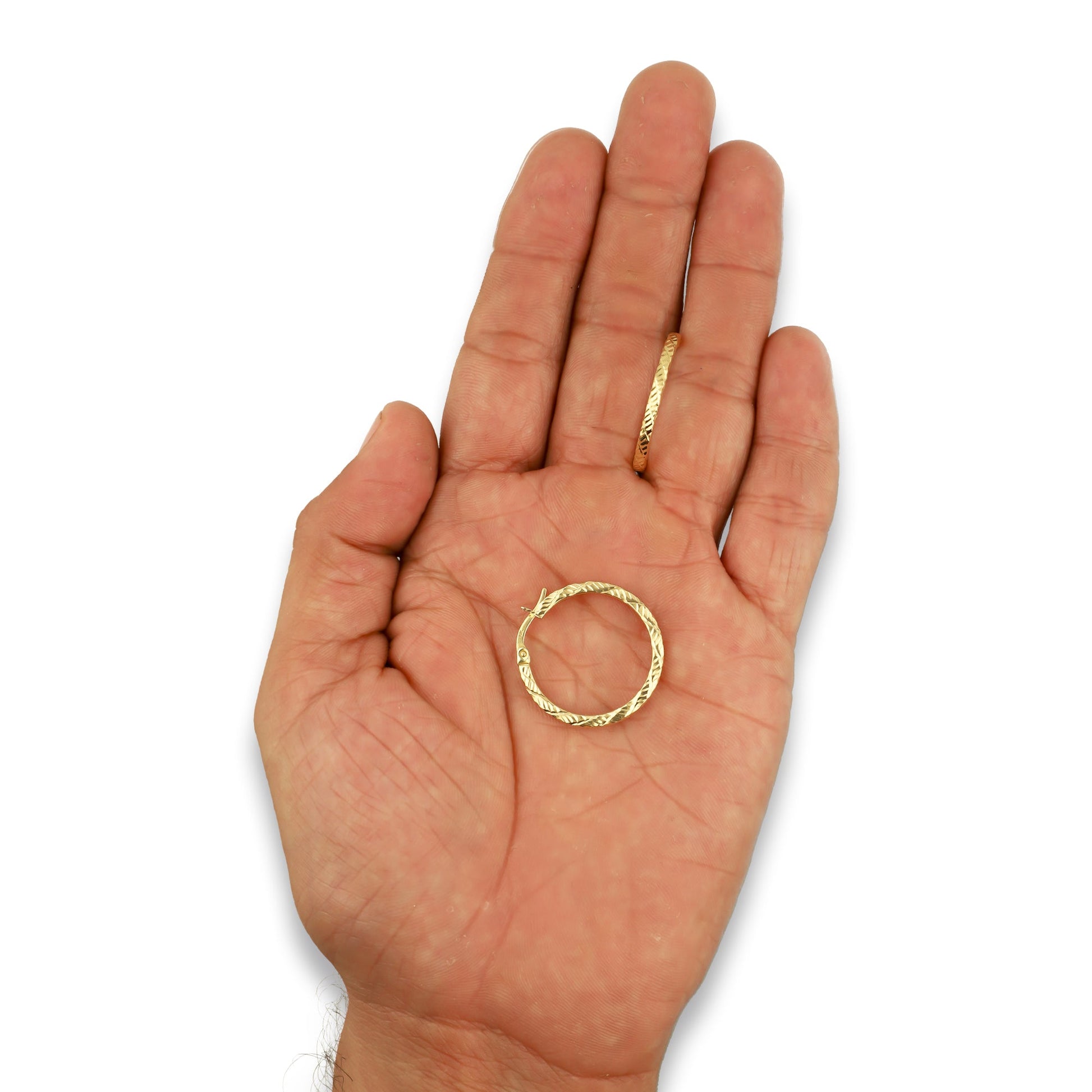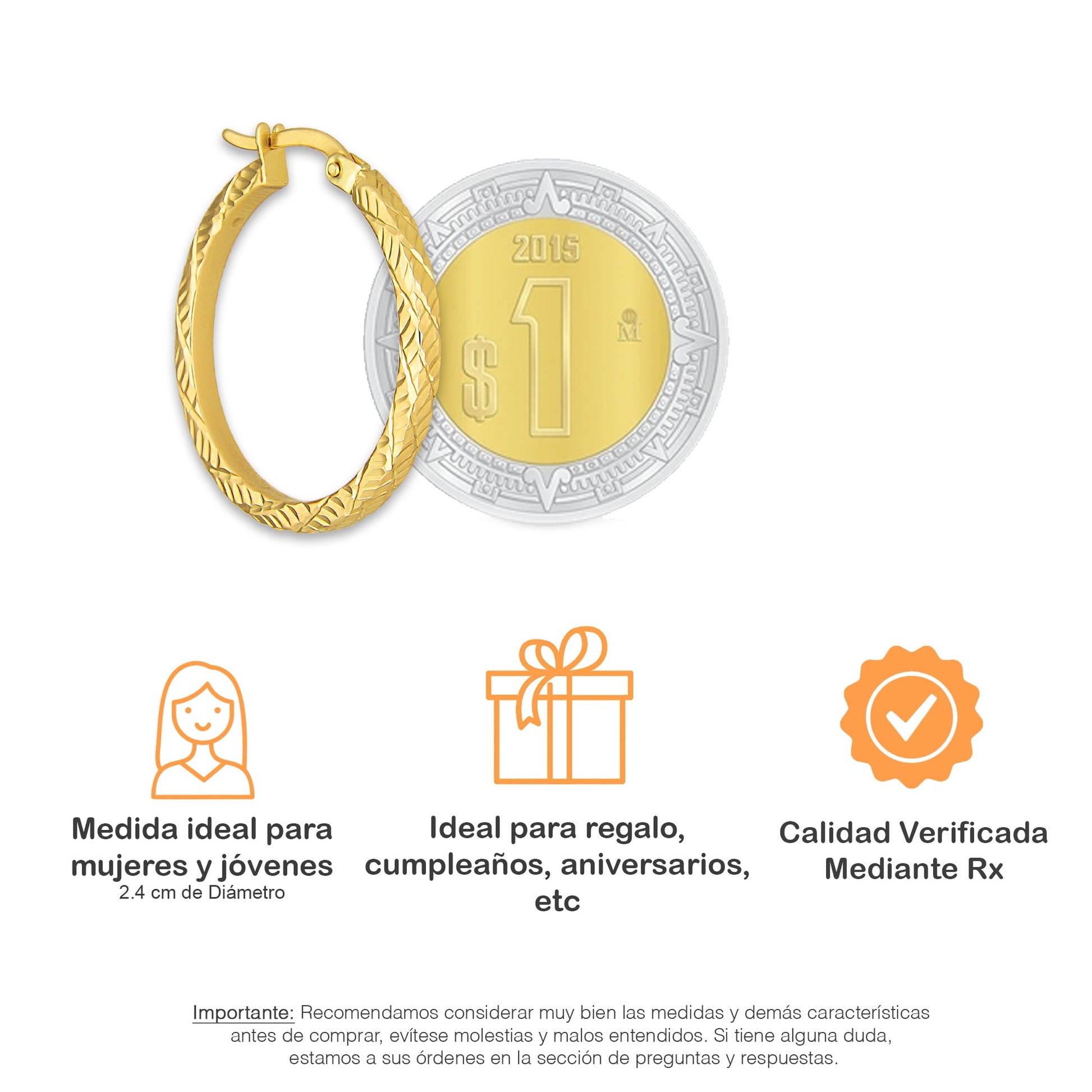 MR10AR038 Arete Arracada Oro Sólido 10K EMF10 Modelo Espiral Texturizada Diámetro 2.4 cm