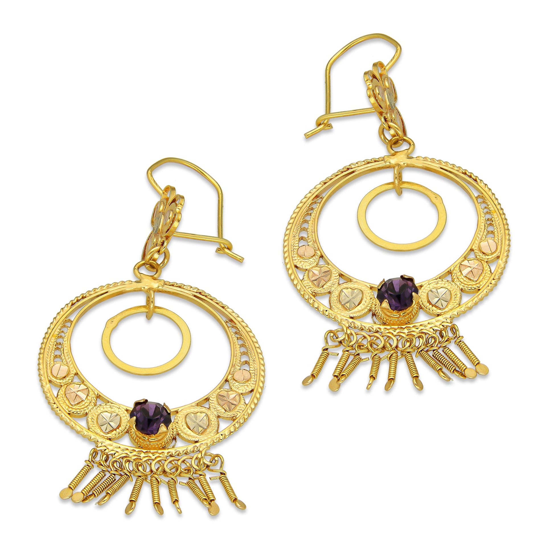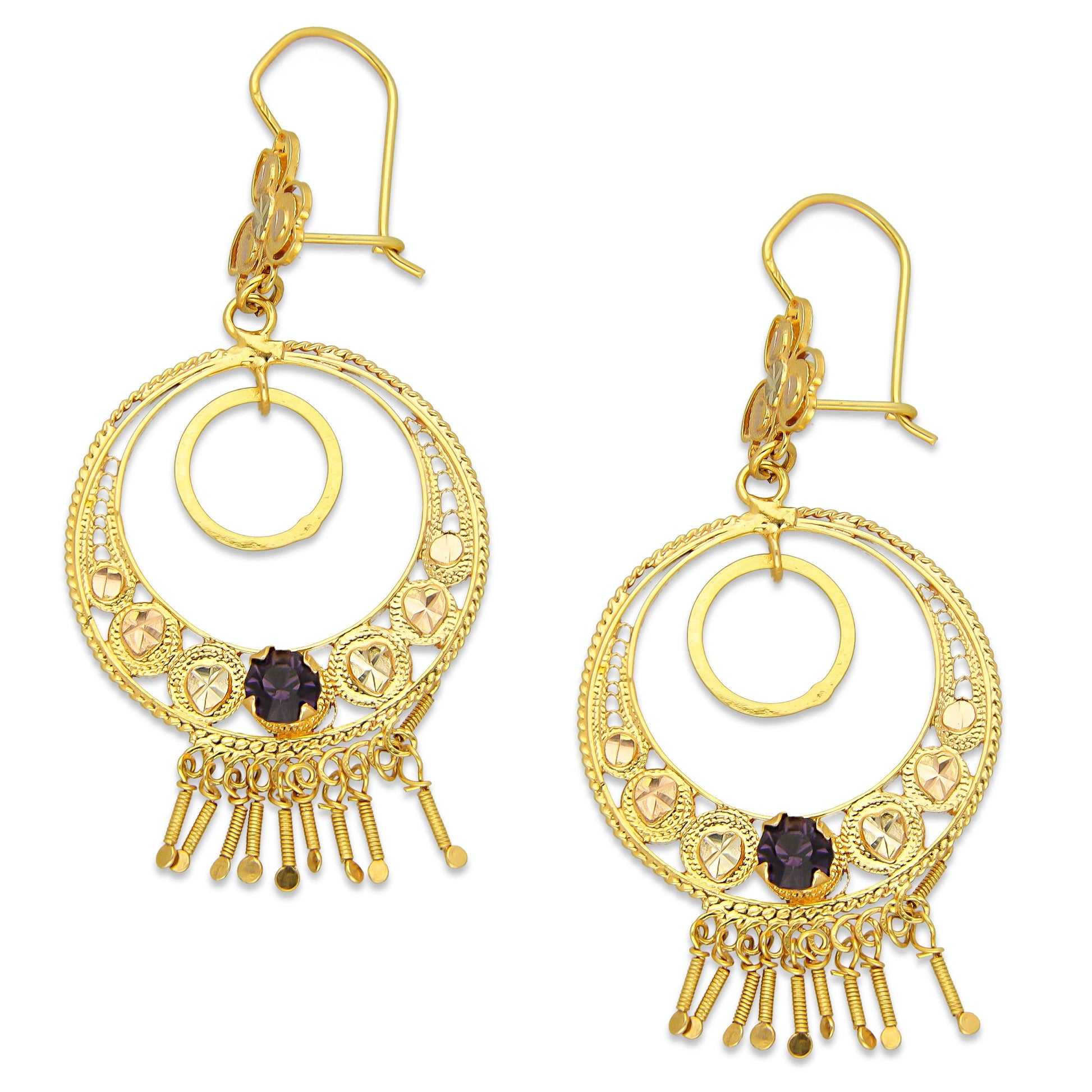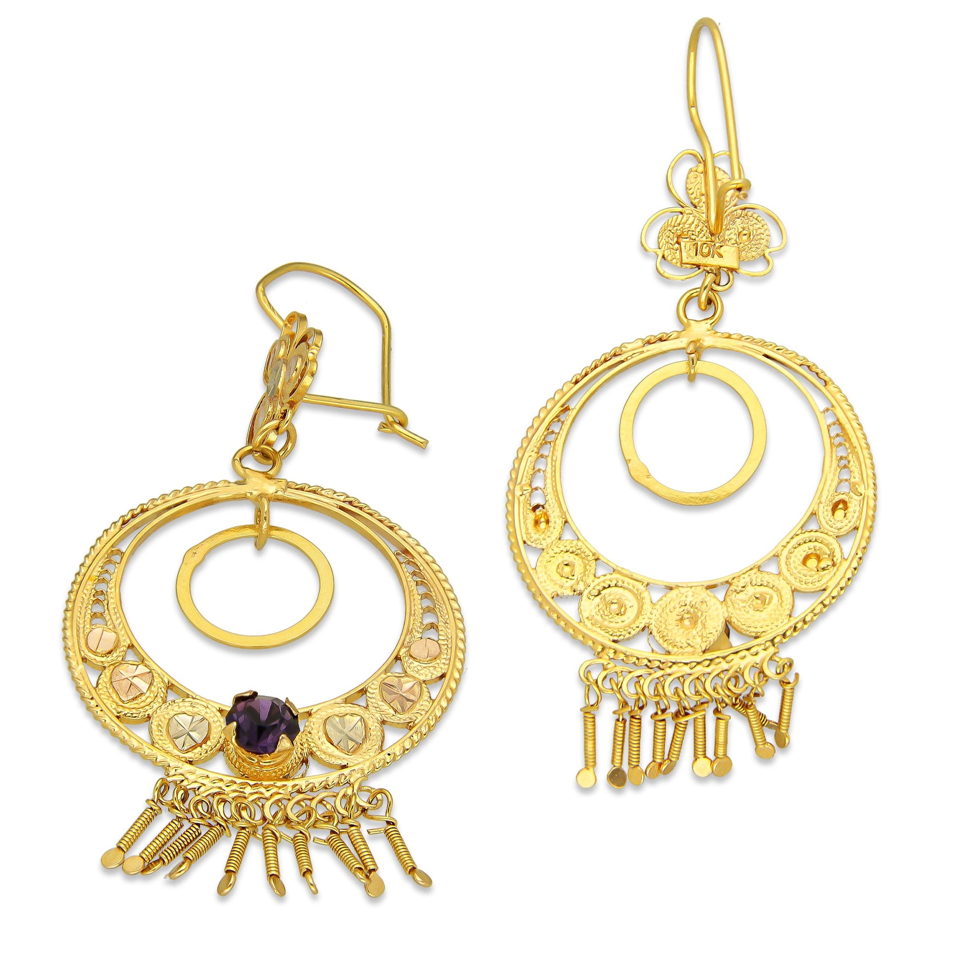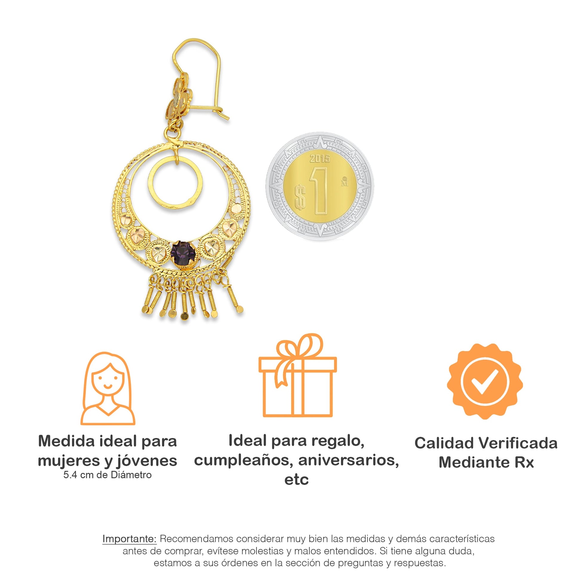 MR10AR044 Arete Arracada Oro Sólido 10K Modelo Círculo Canasta con Círculo al Centro Diámetro 5.4 cm