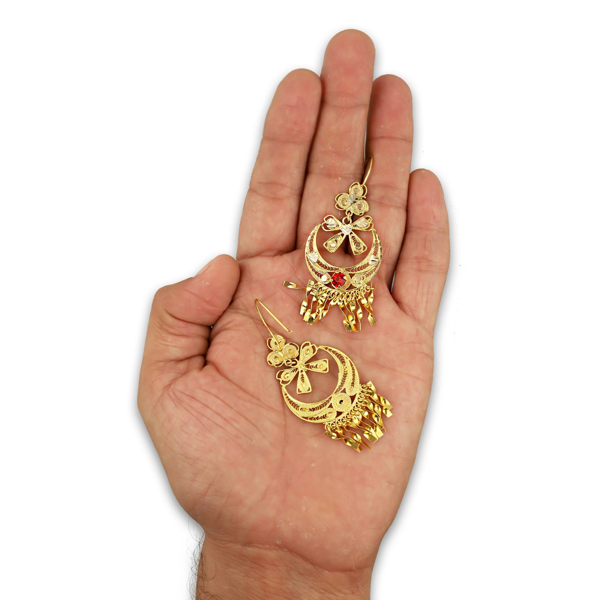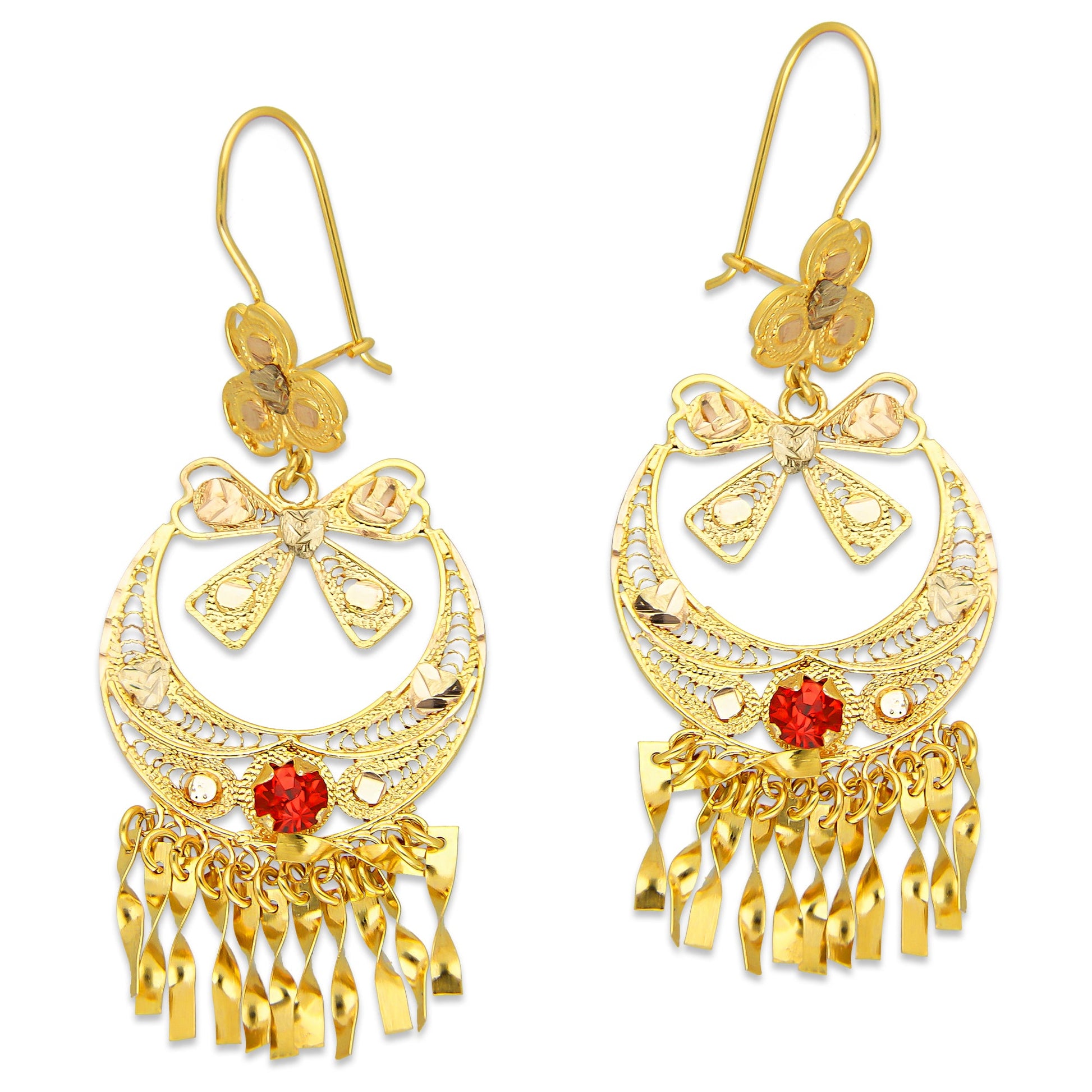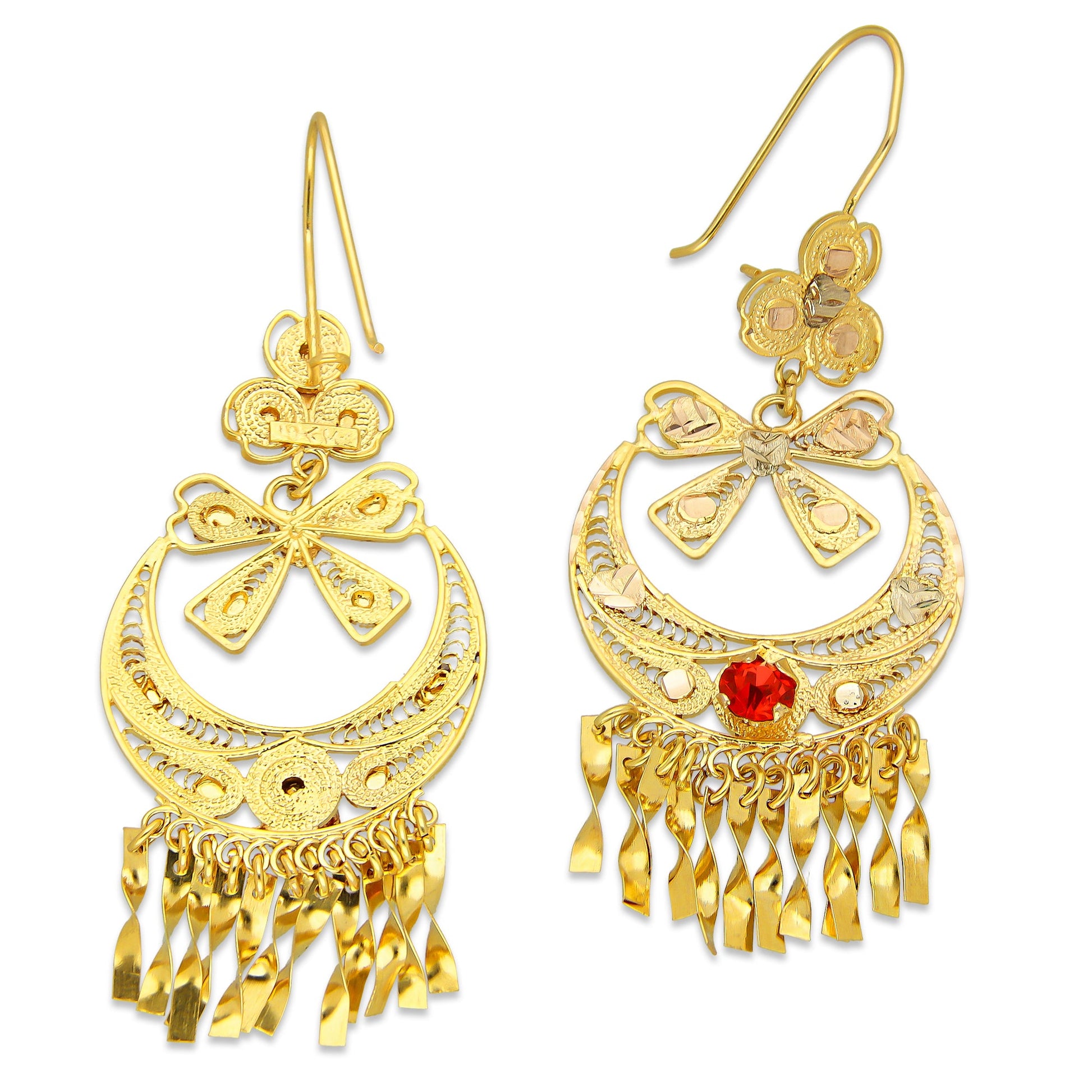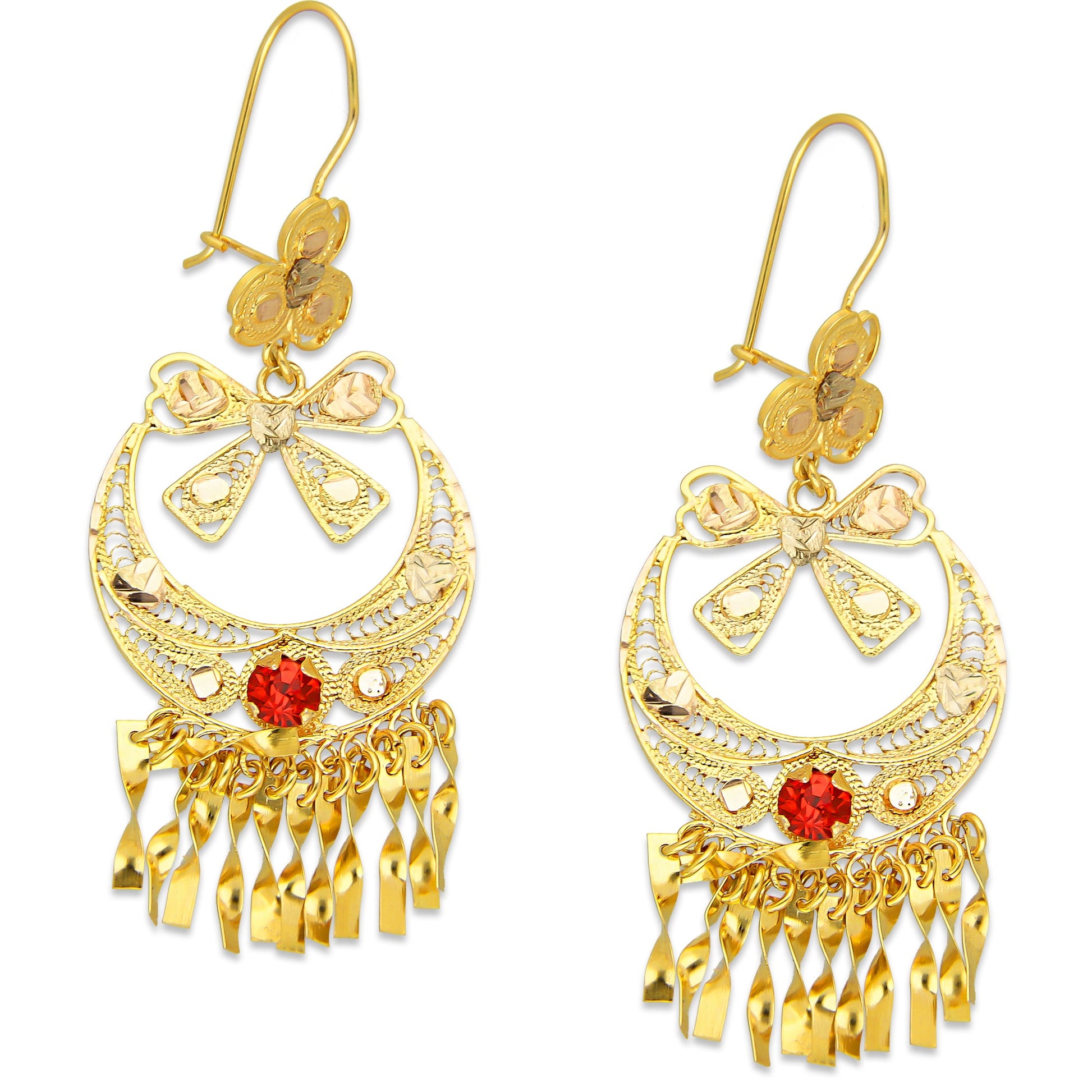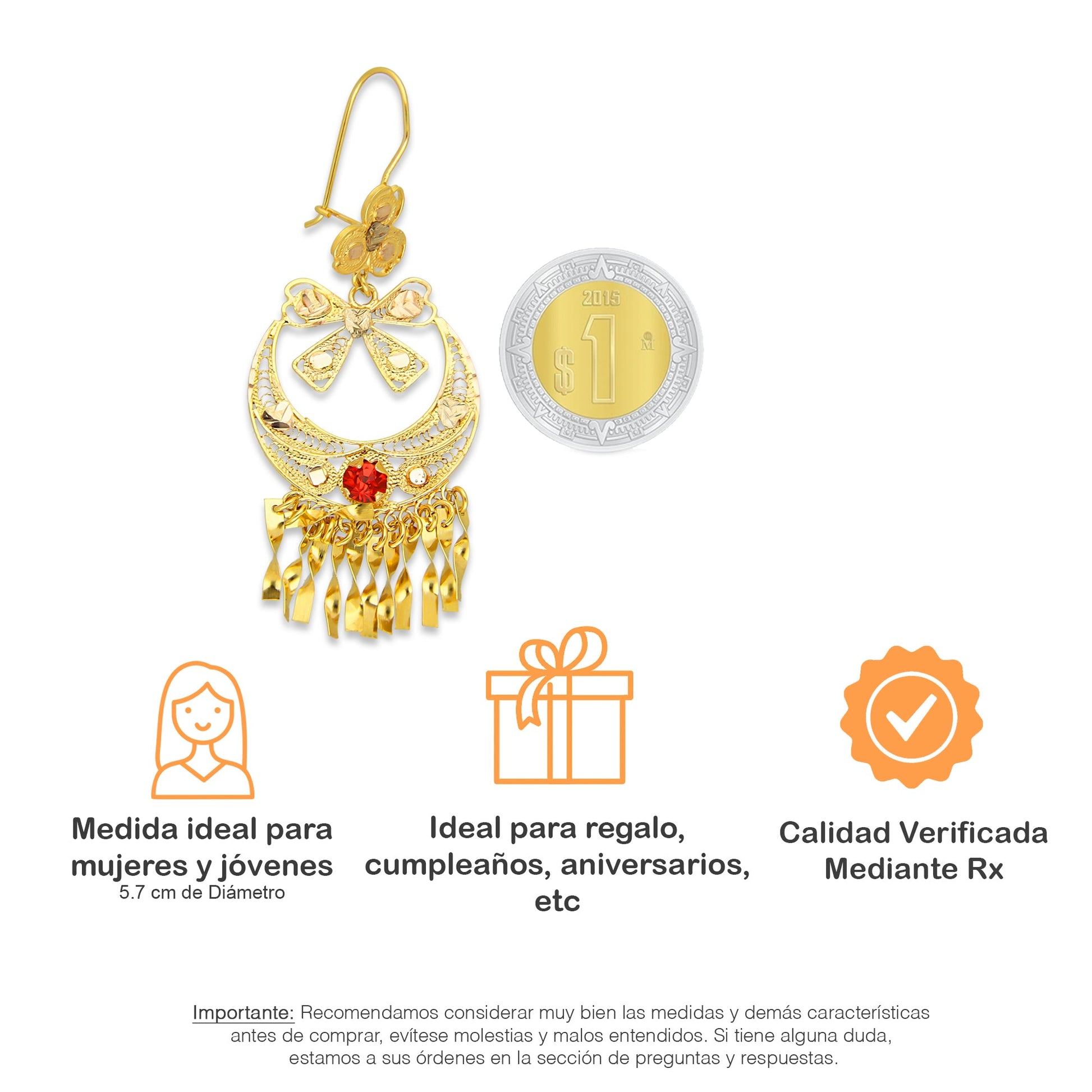 MR10AR045 Arete Arracada Oro Sólido 10K Modelo Círculo Canasta con Flor al Centro Diámetro 5.7 cm