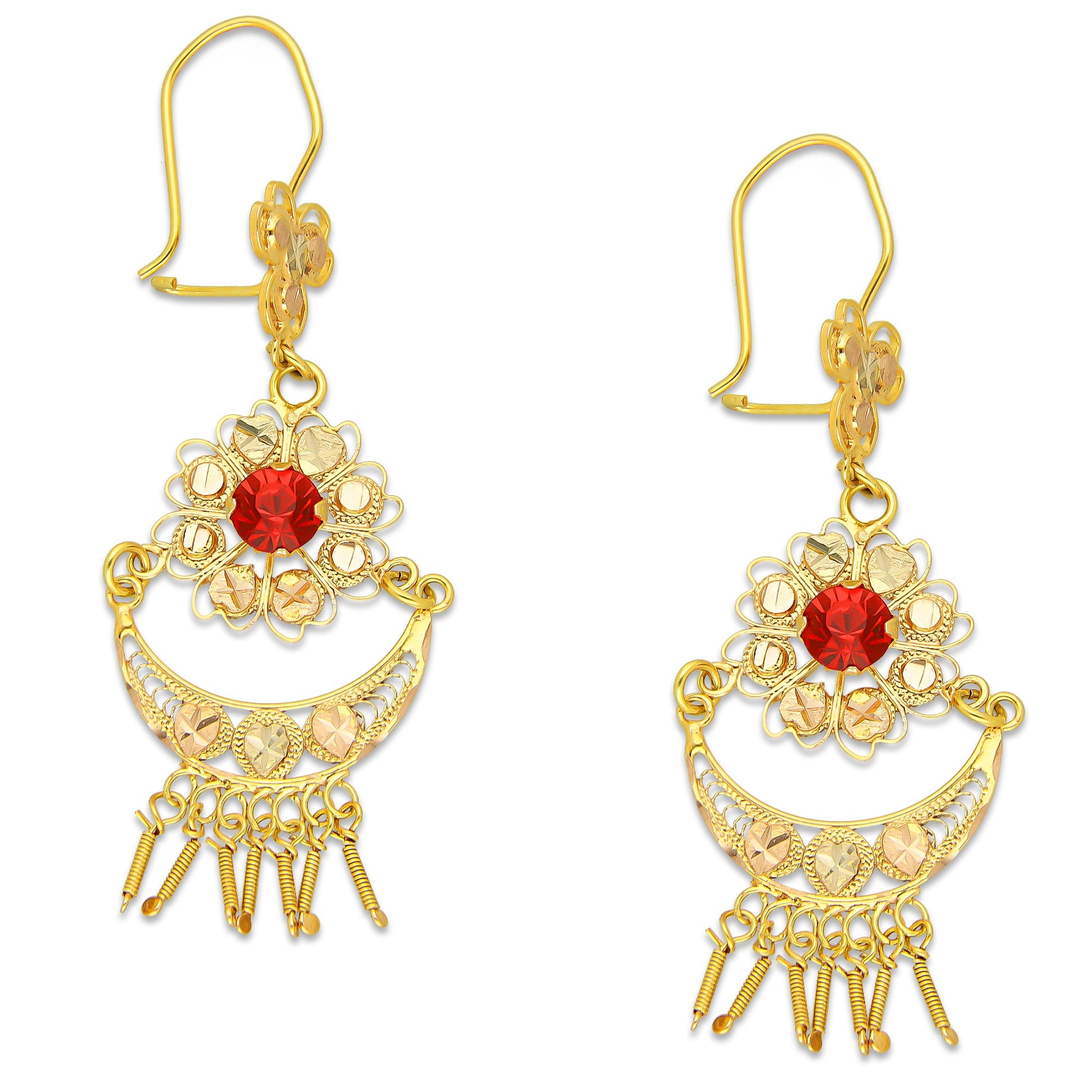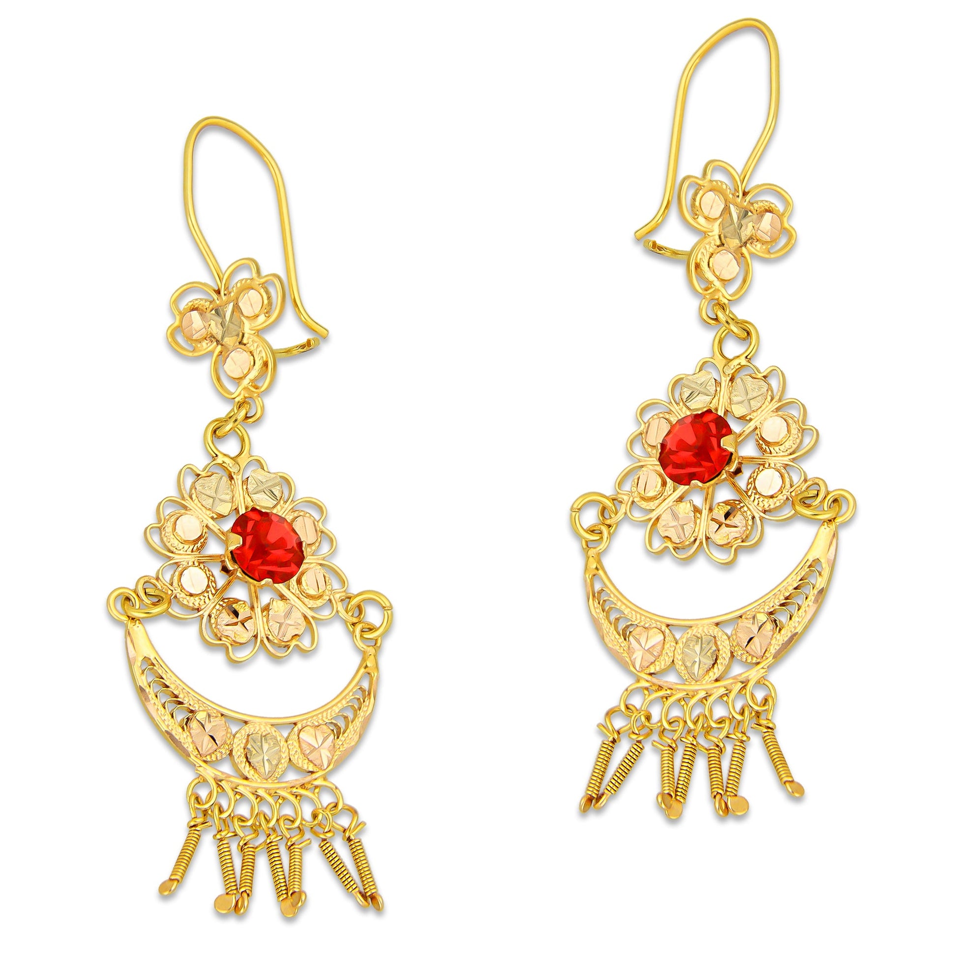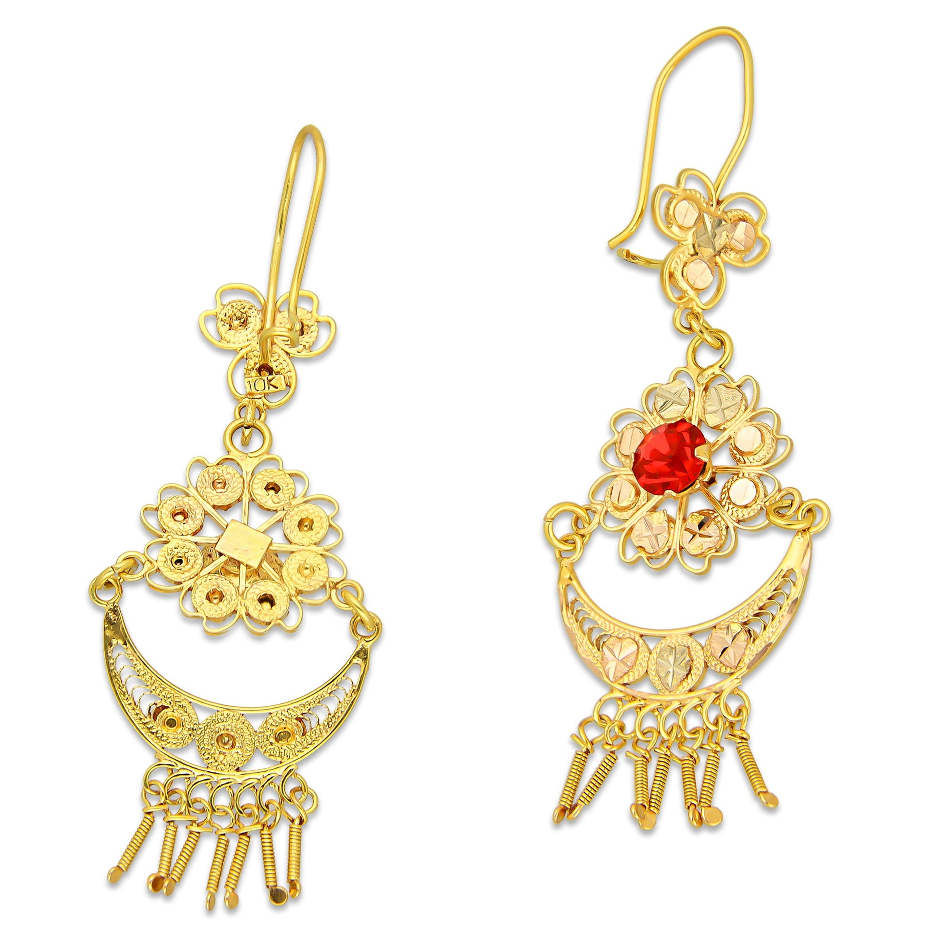 MR10AR053 Arete Arracada Oro Sólido 10K Modelo Media Luna con Barras Colgantes Pequeño Diámetro 6.1 cm