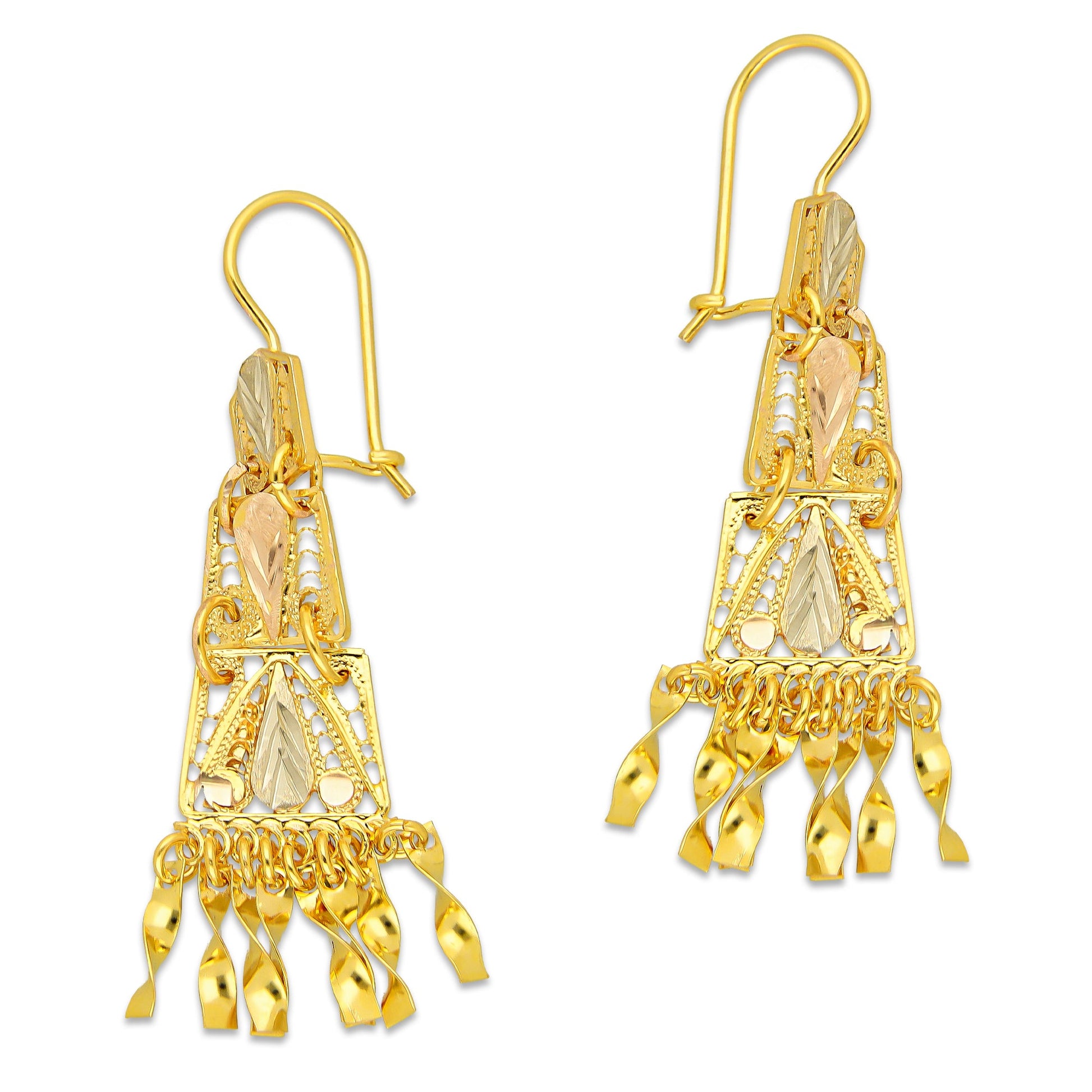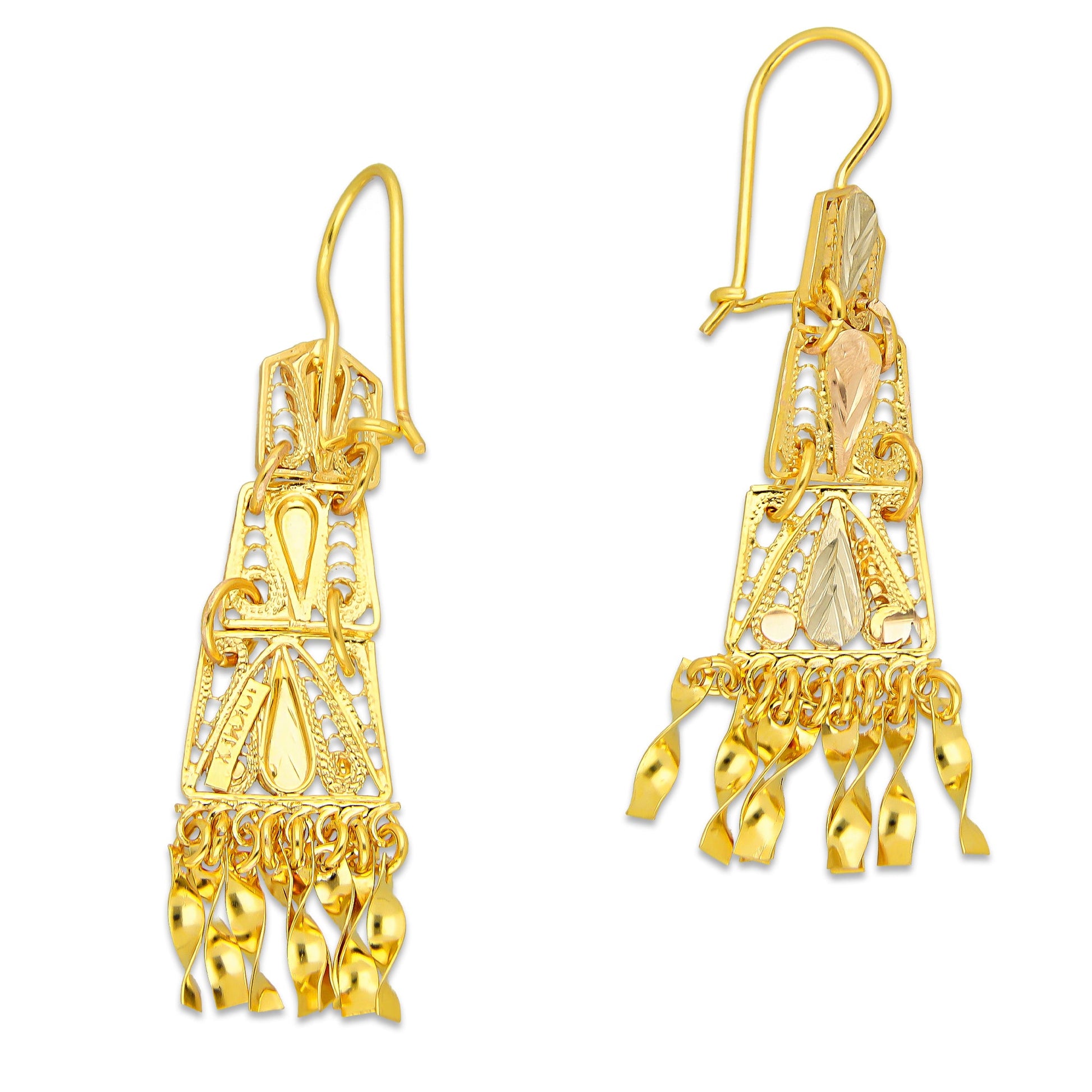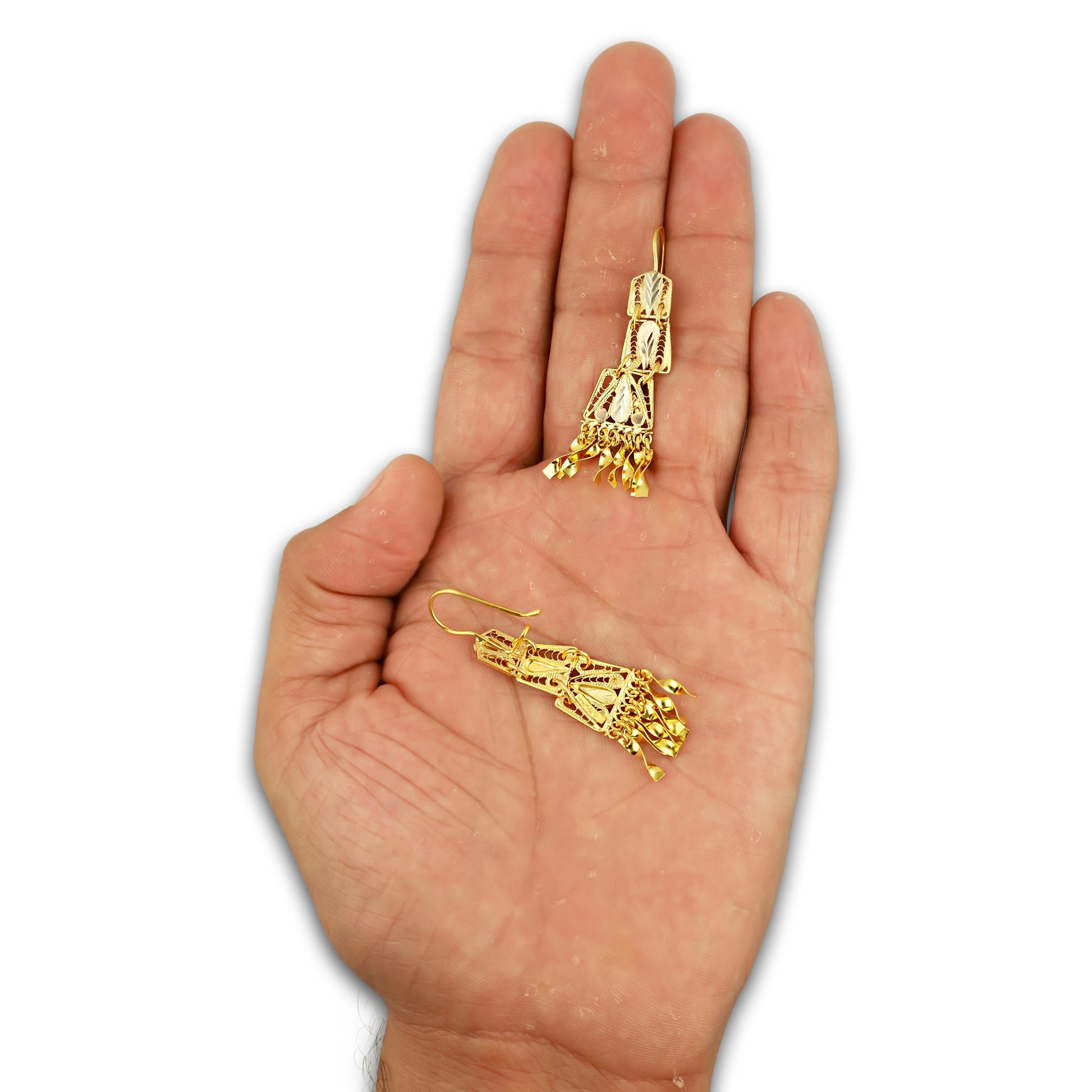 MR10AR054 Arete Arracada Oro Sólido 10K Modelo Romboide Articulado con Colgantes Diámetro 5.2 cm