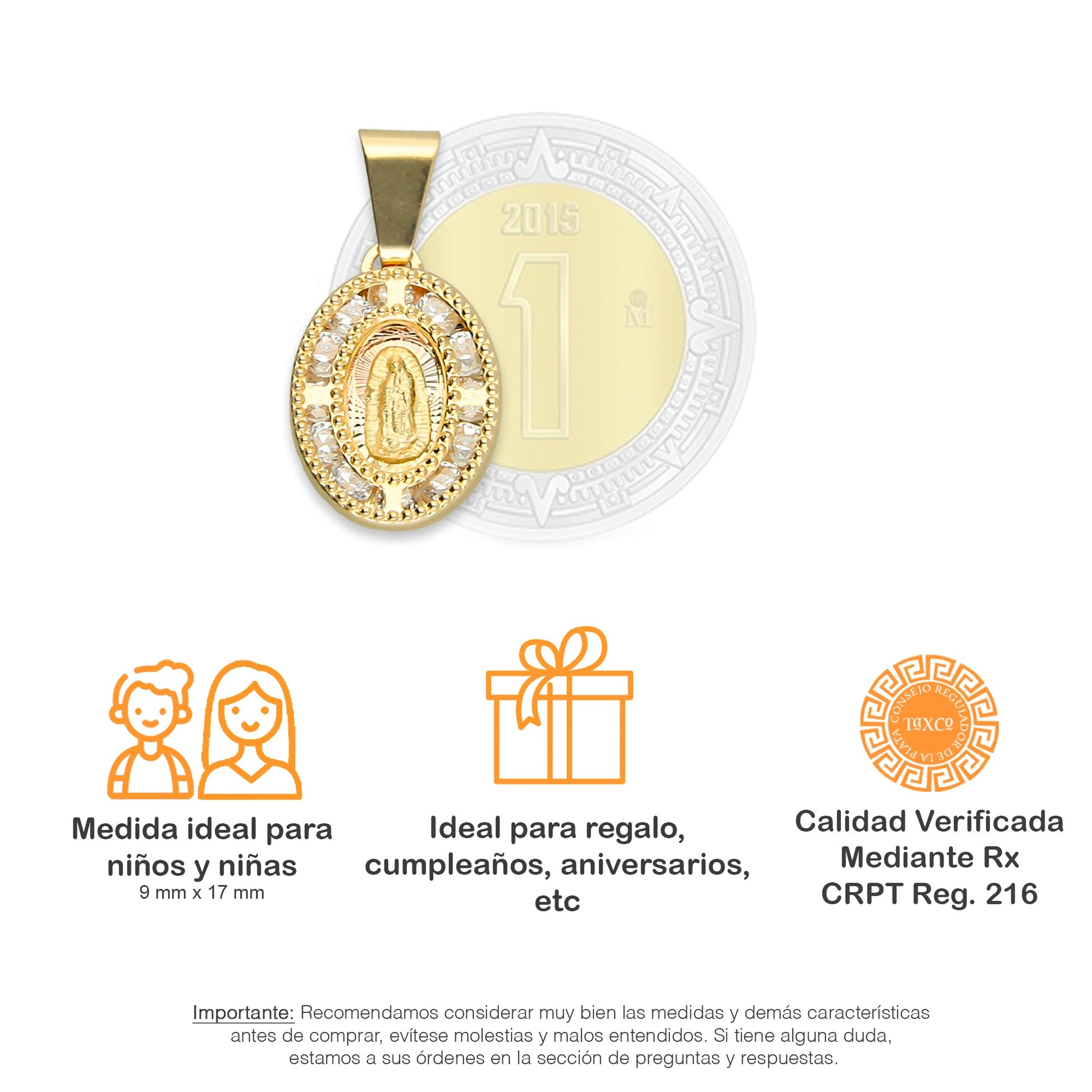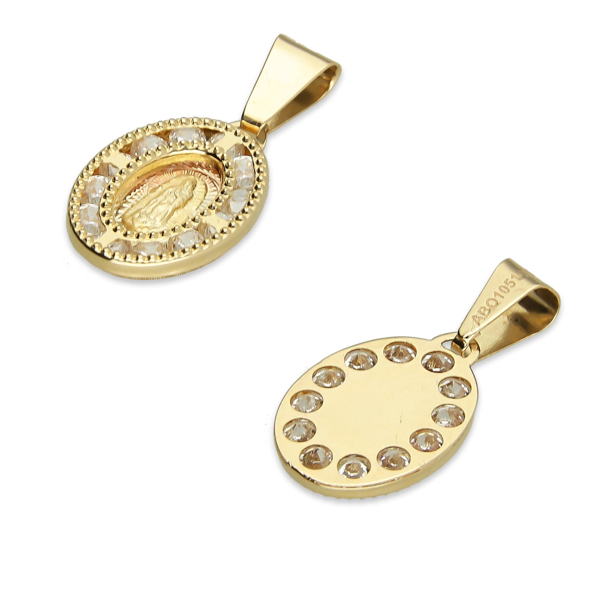 MR14DJ001 Dije Medalla Oval Oro Sólido 14K Virgen Zirc Perl 0.9 x 1.7 cm