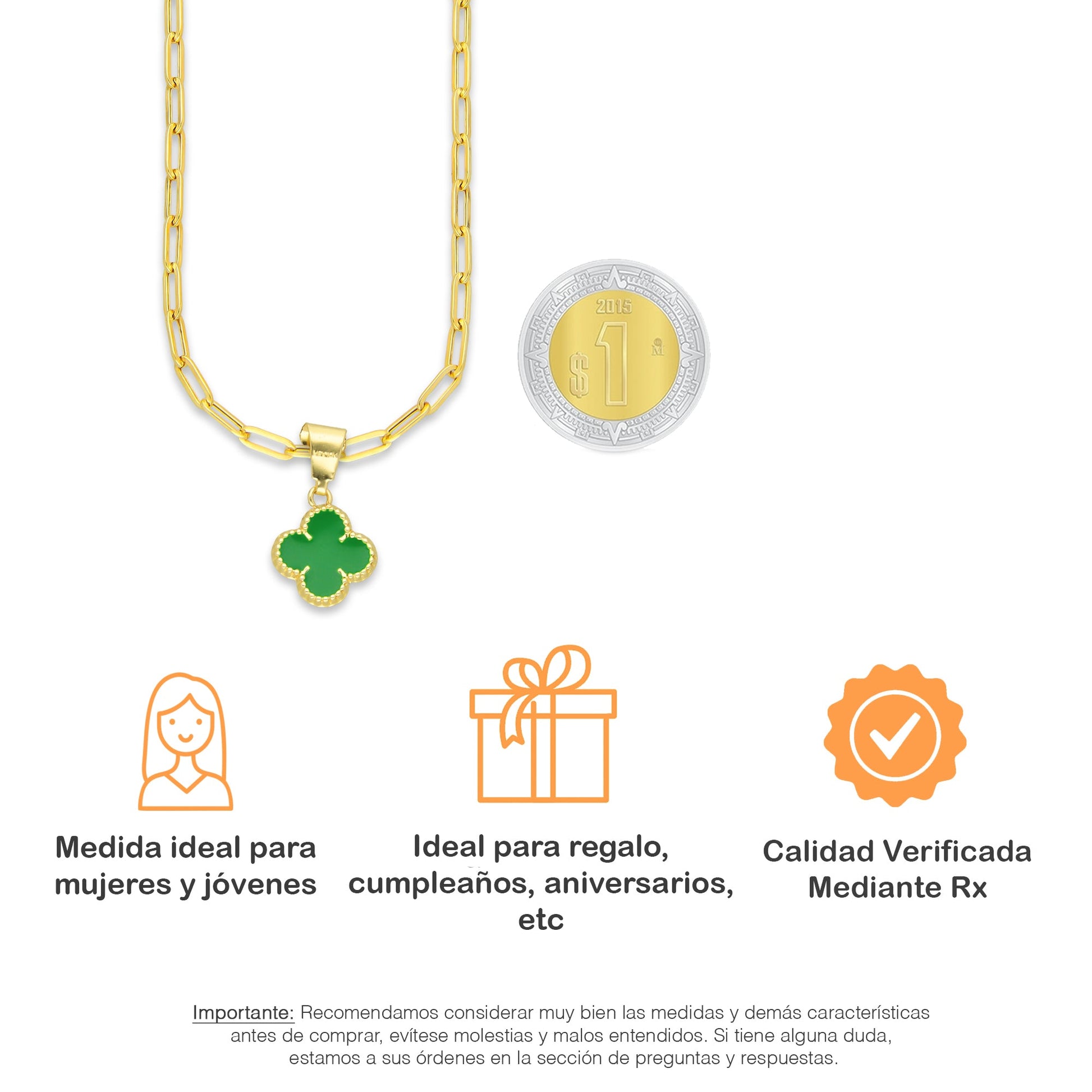 MR10DP105 Cadena Oro Sólido 10K + Dije Oro Sólido 10K EM Trébol Esmaltado Verde 1 cm x 1.9 cm