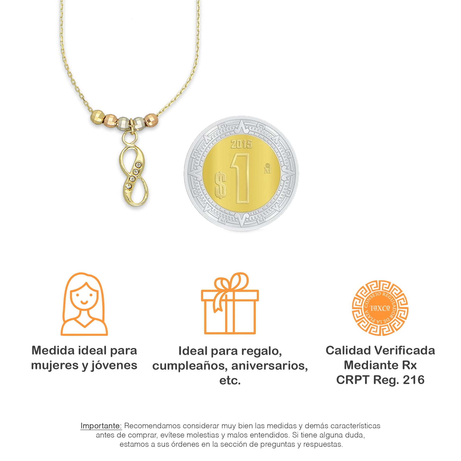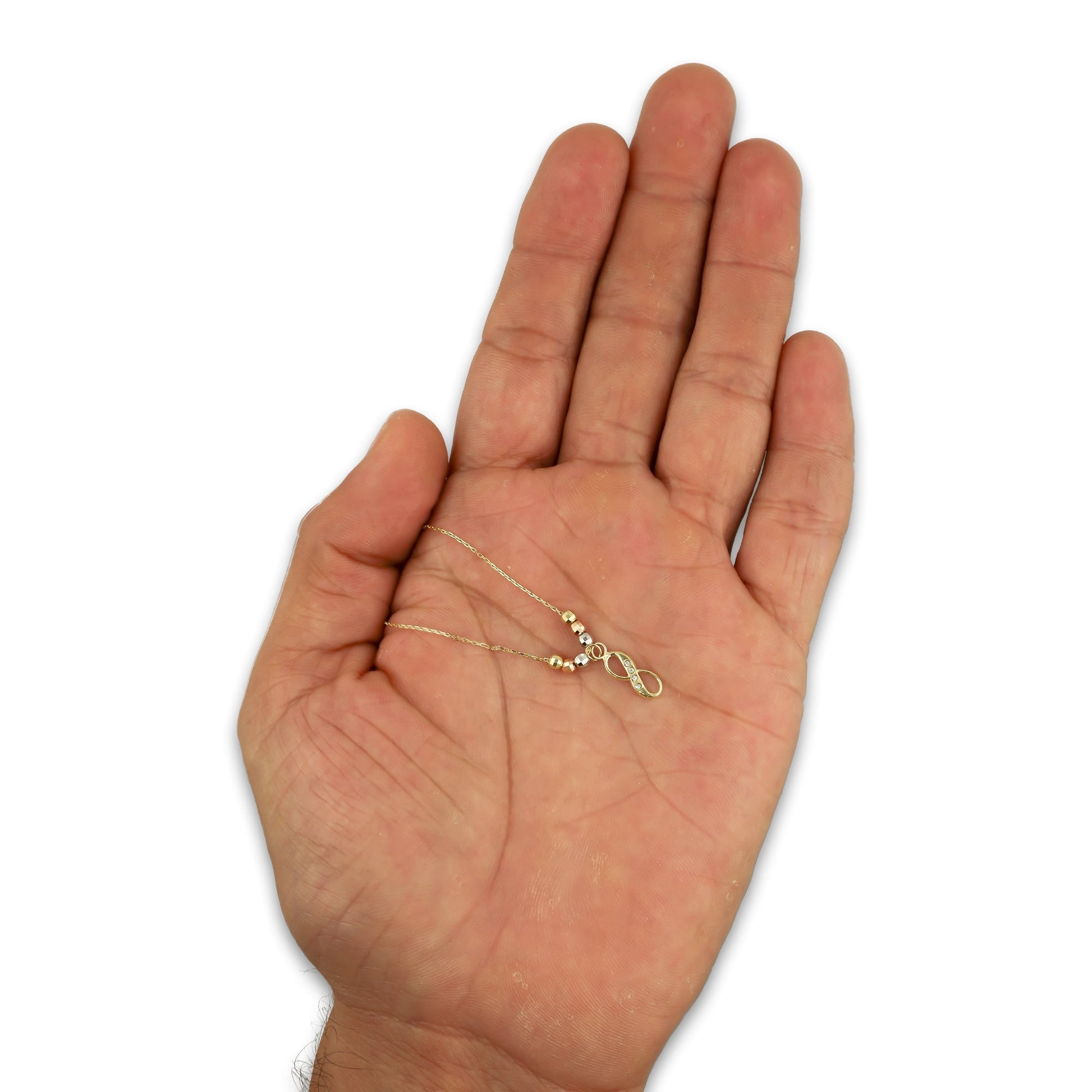 MR10G001 Gargantilla Para Dama Oro Sólido 10K EMF10 Súper Ligera Fantasy Mod Bolitas Facetadas Infinito 40 cm
