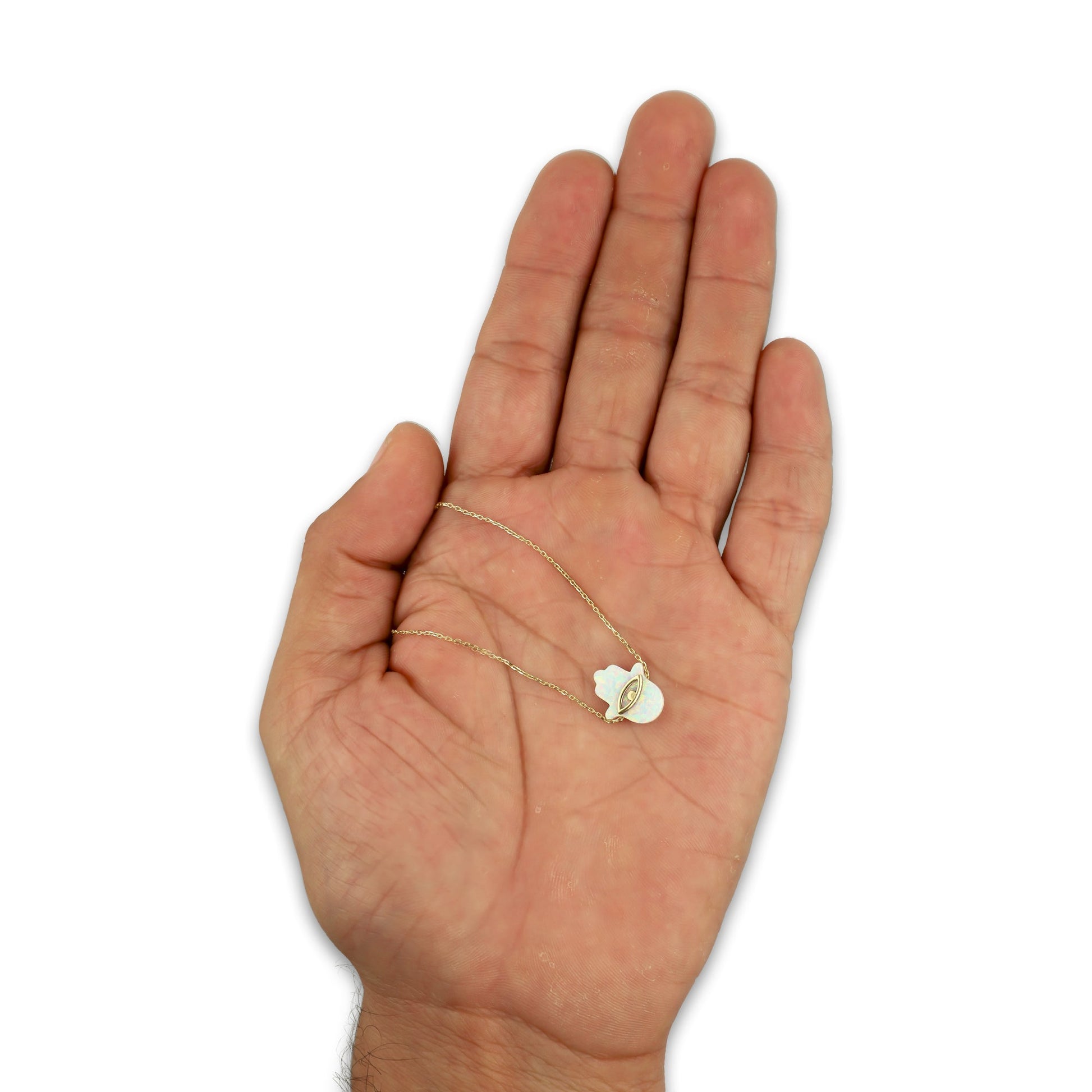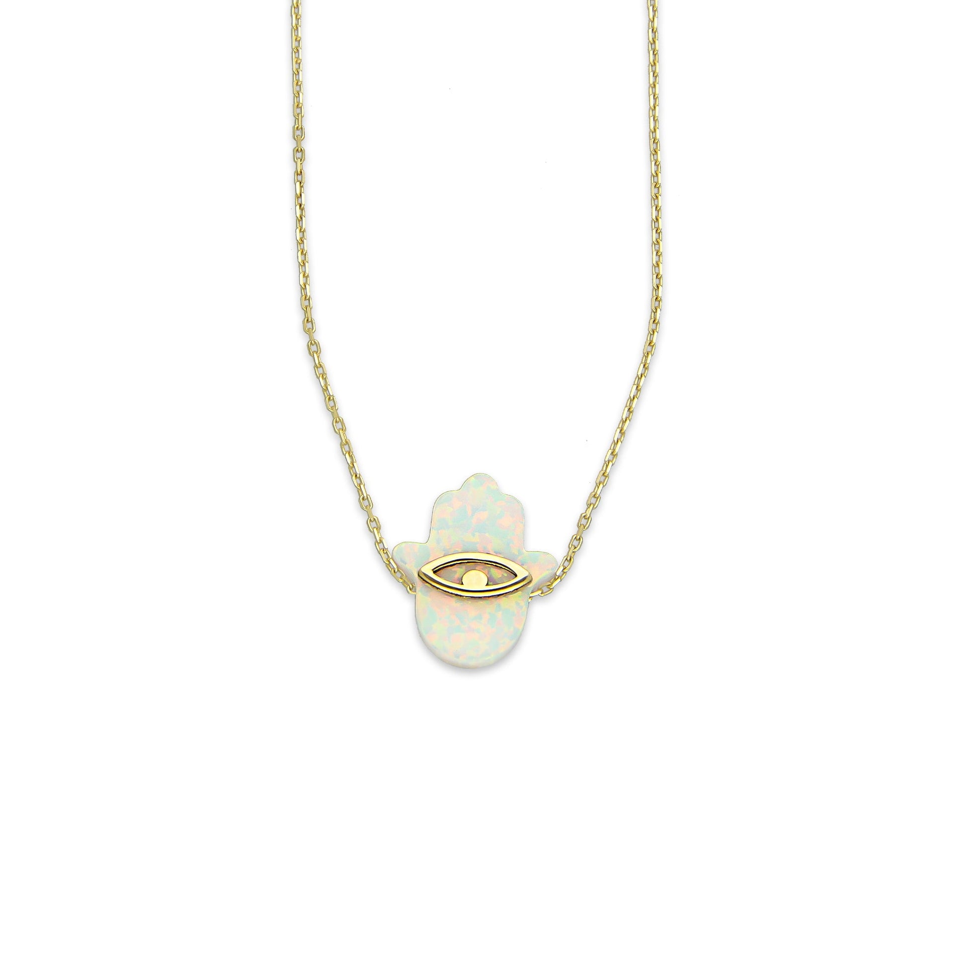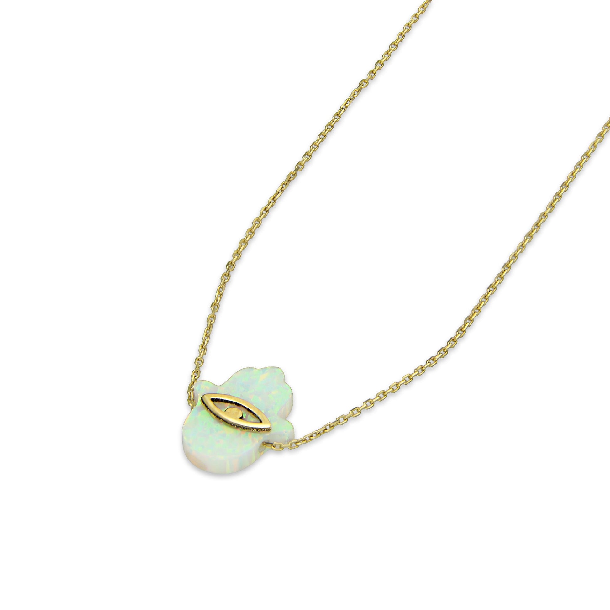 MR10G009 Gargantilla Para Dama Oro Sólido 10K EMF10 Súper Ligera Fantasy Mod Mano de Fátima Ópalo Blanco 45 cm