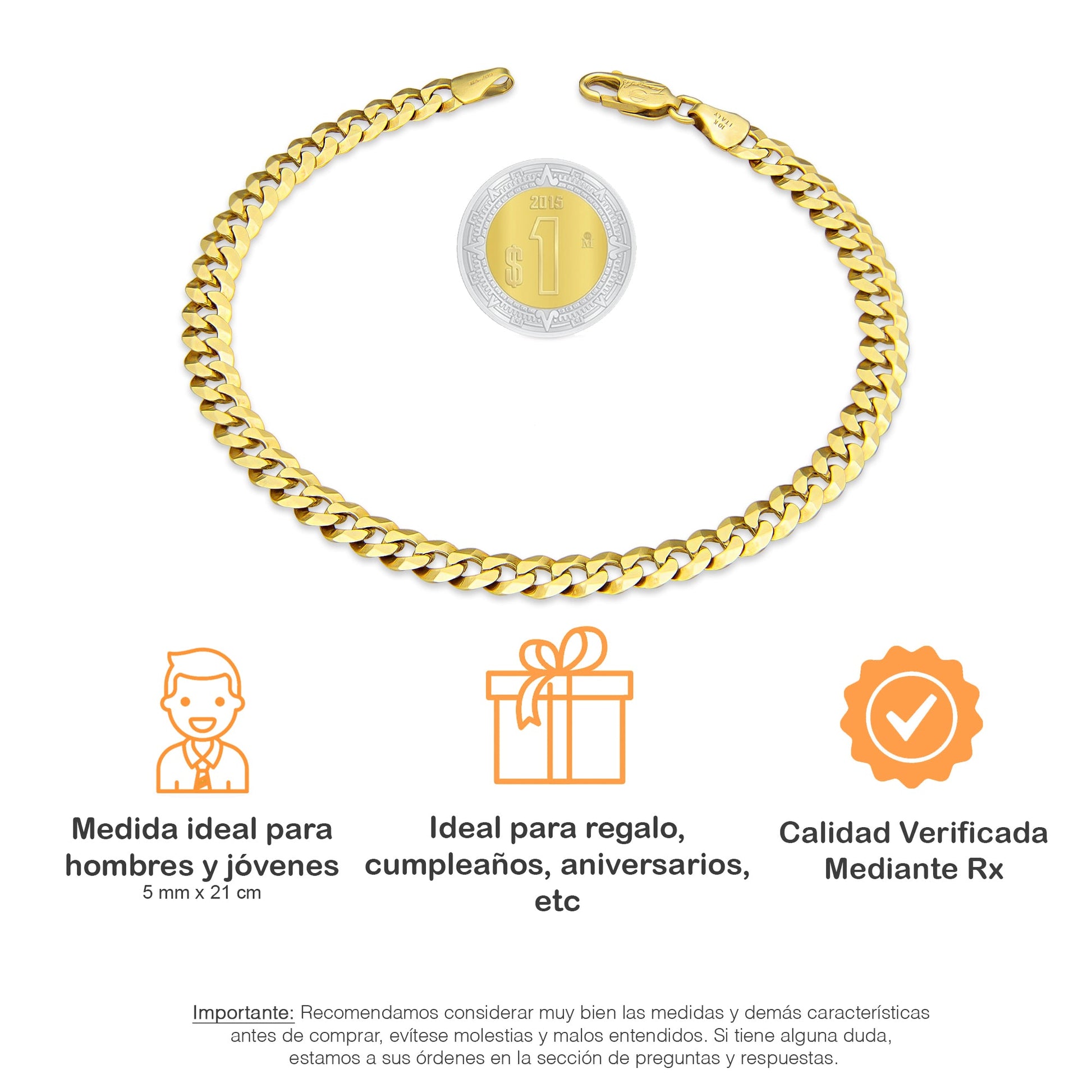 MR10PC048 Pulsera Para Caballero Oro Sólido 10K Mod Cubana Americana Lisa 5 mm x 21 cm