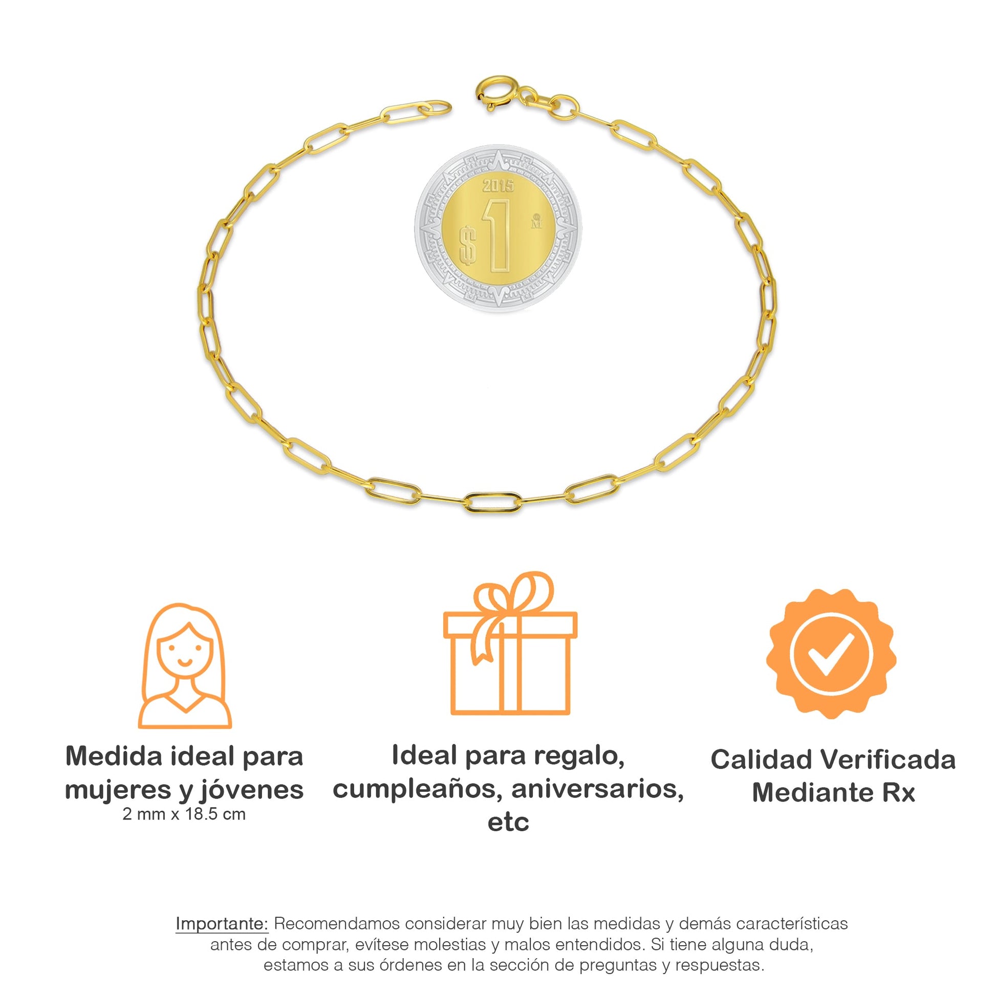 MR10PD134 Pulsera Dama Oro Sólido 10K EMF10 Modelo Clip 2 mm x 18.5 cm