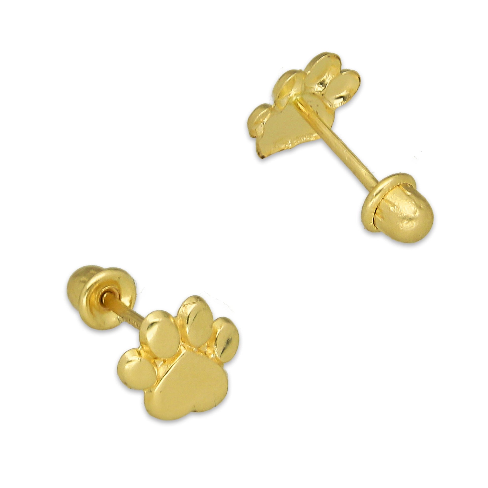 MR14AB007 Arete Broquel Oro Sólido 14K Modelo Huellitas 6 mm de Diámetro