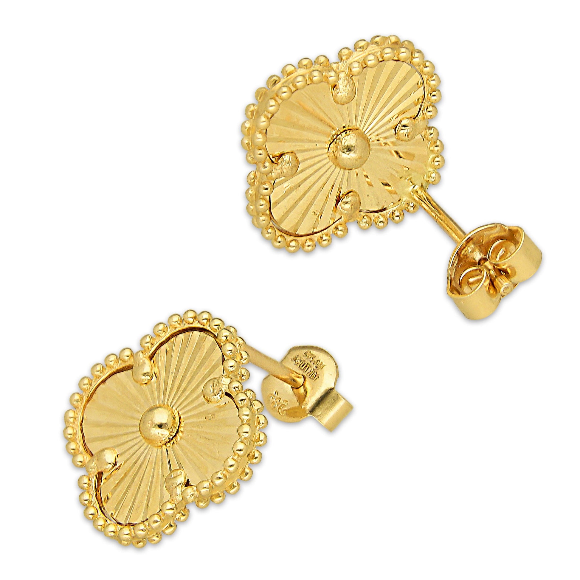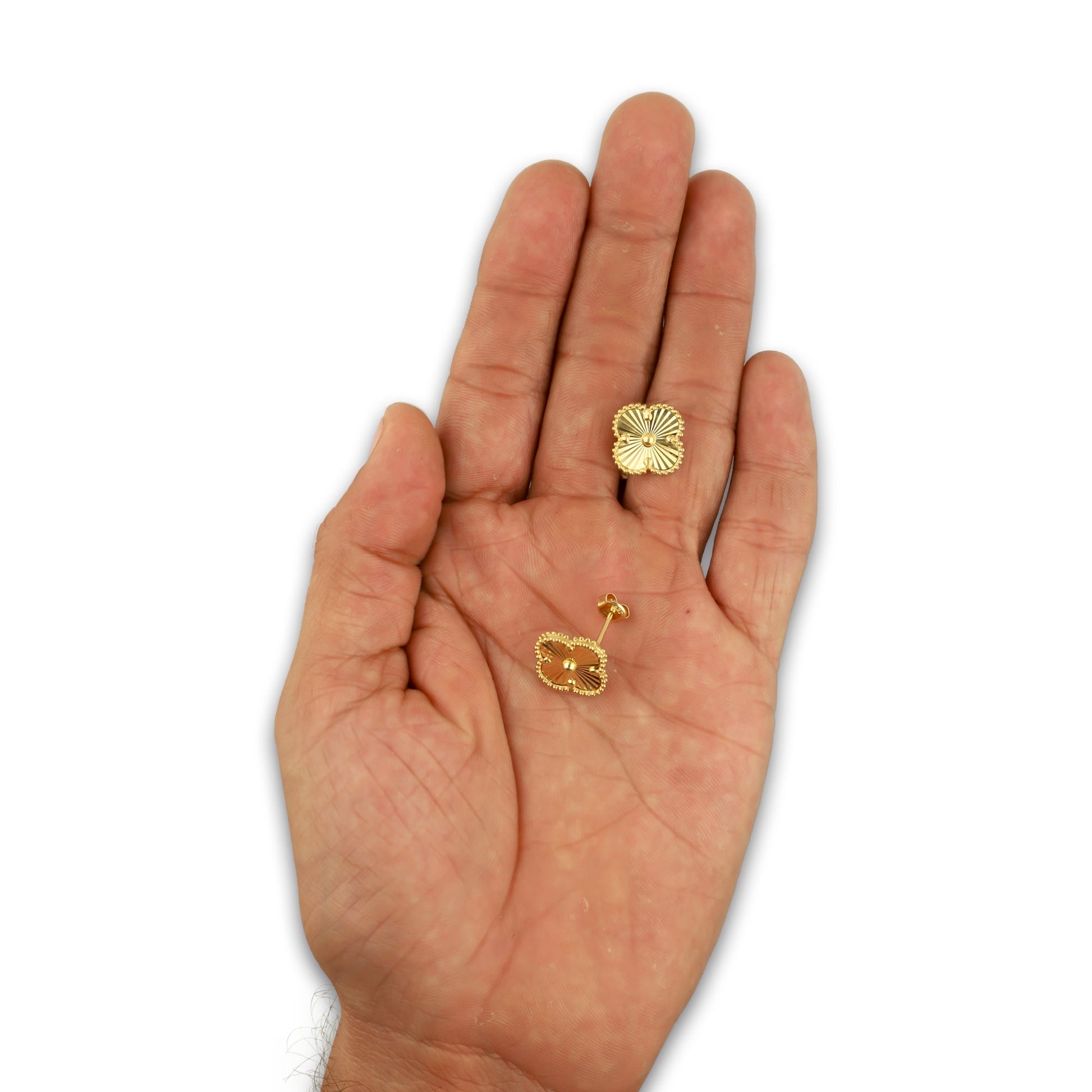 MR14AB019 Arete Broquel Oro Sólido 14K Modelo Trébol 1.4 cm Dorado Diámetro 1.4 cm