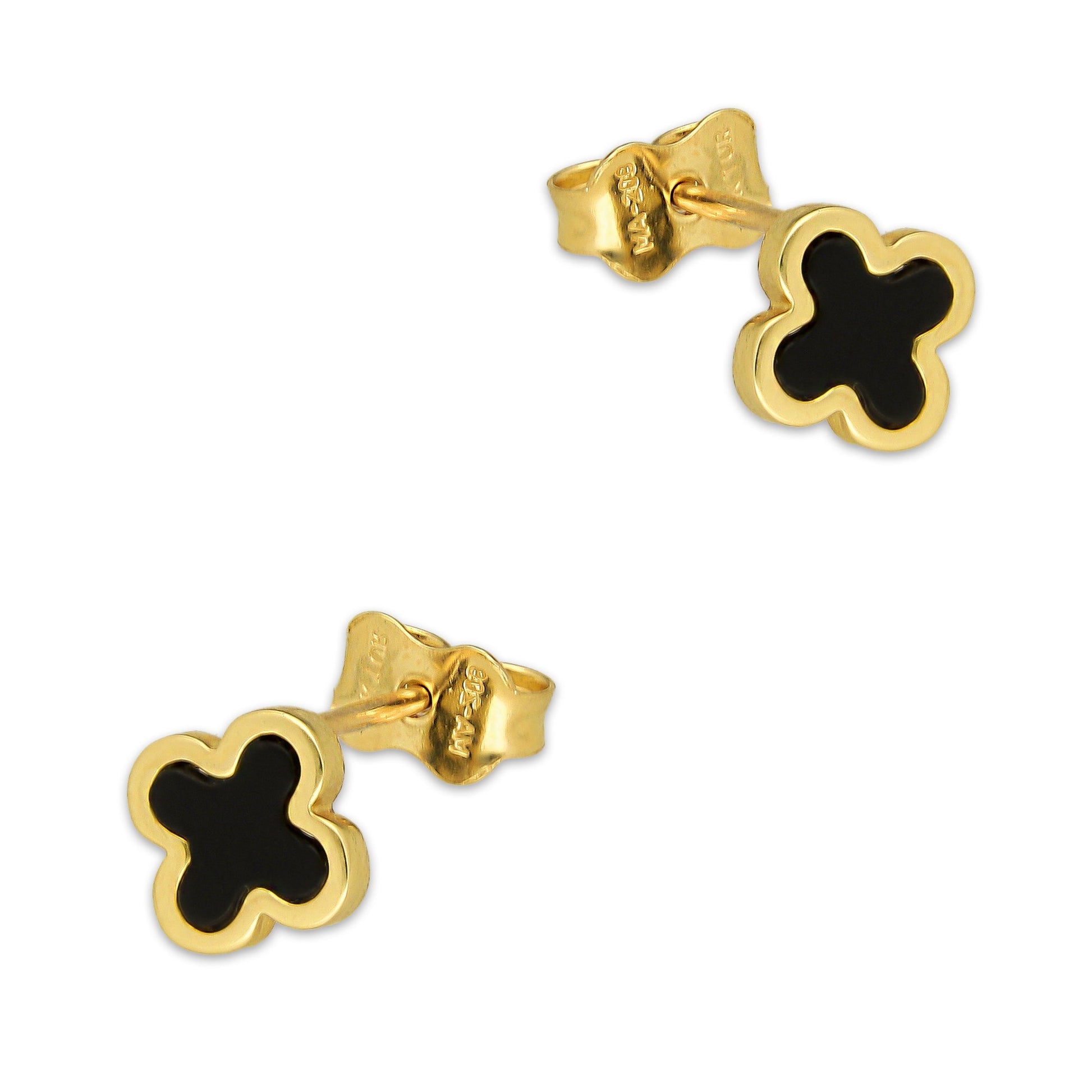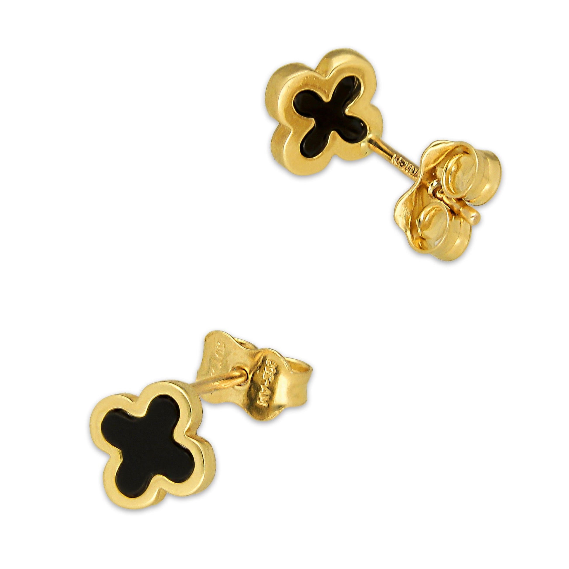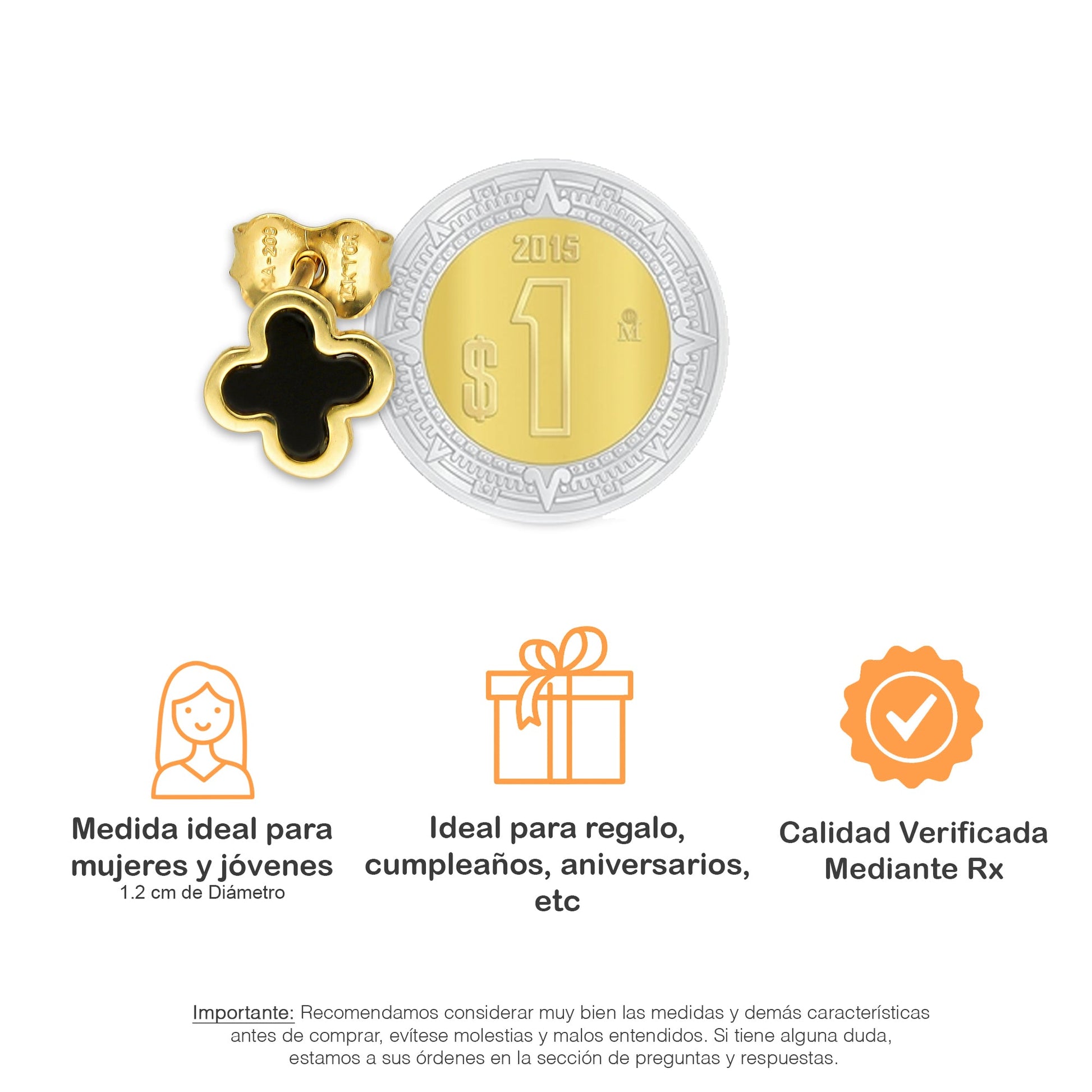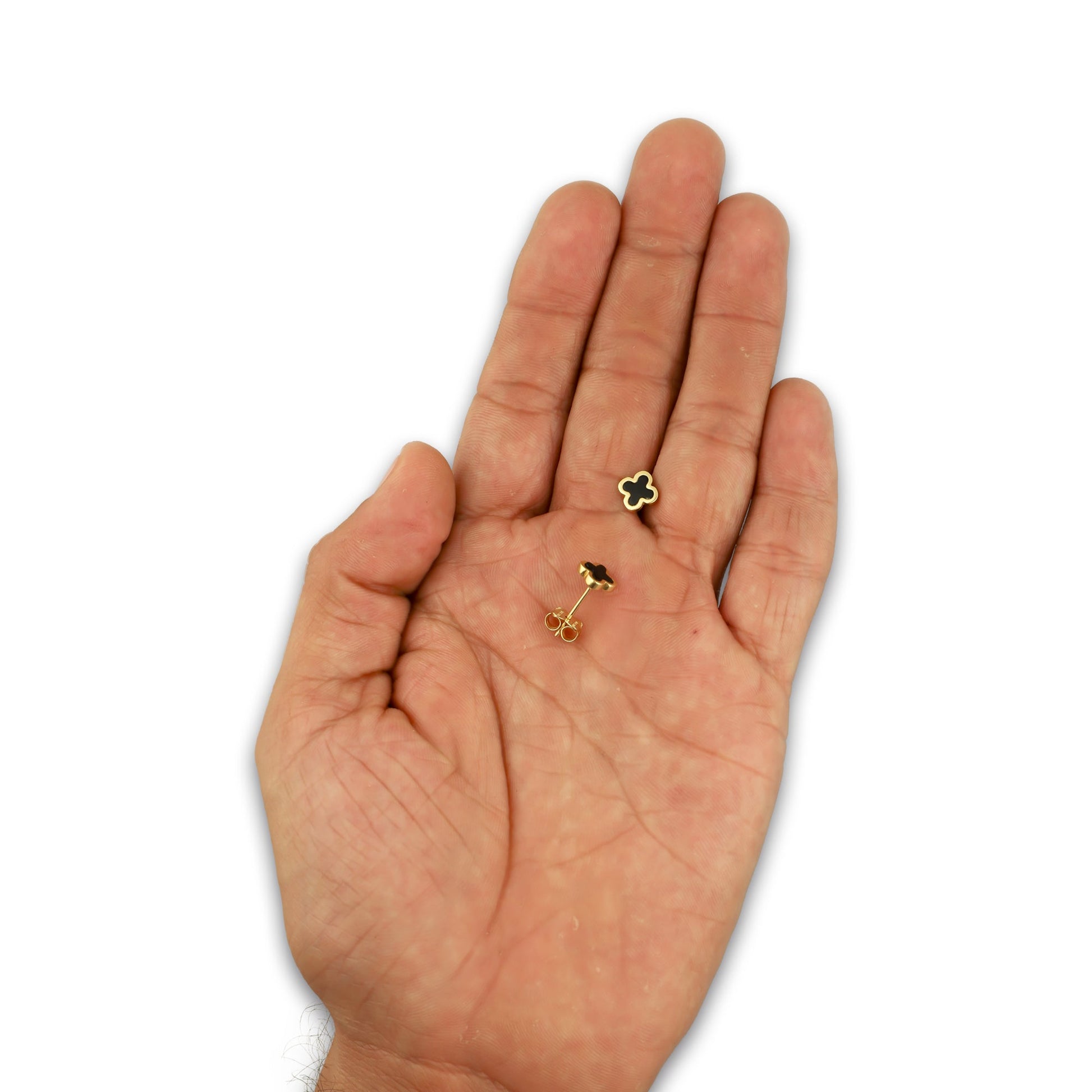 MR14AB022 Arete Broquel Oro Sólido 14K Modelo Trébol 7 mm Negro Diámetro 1.2 cm
