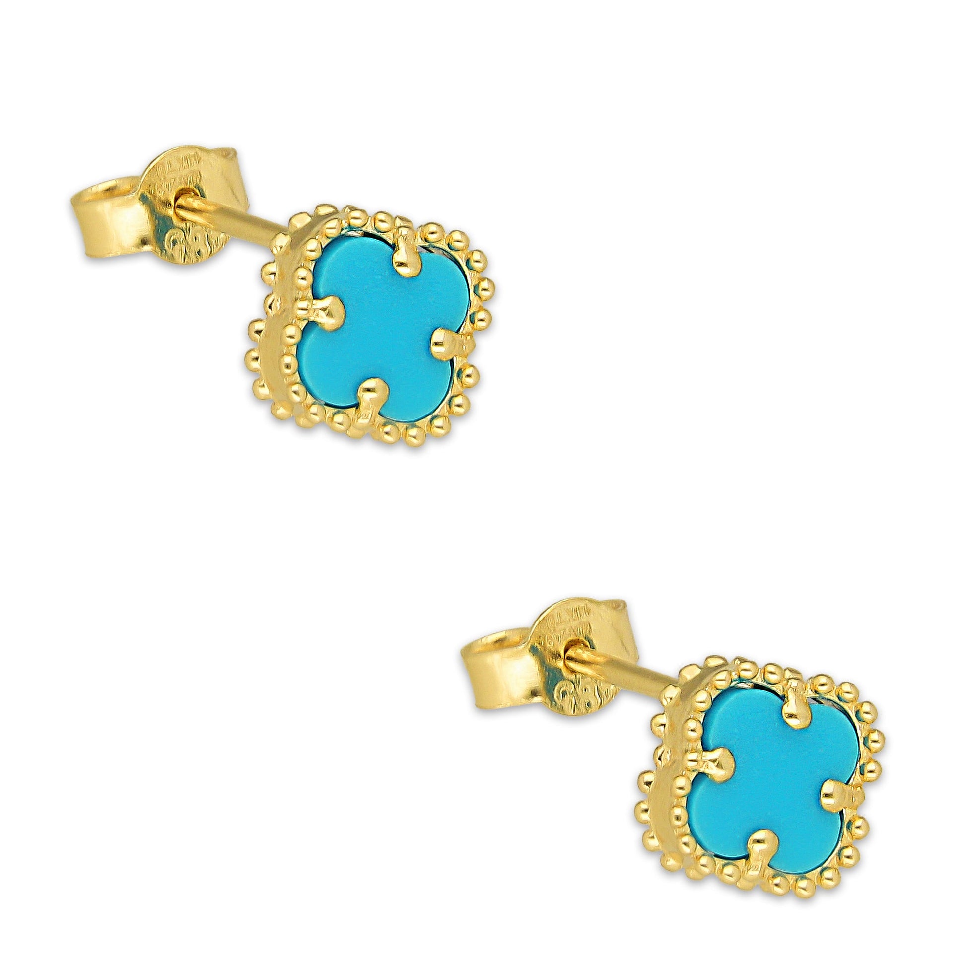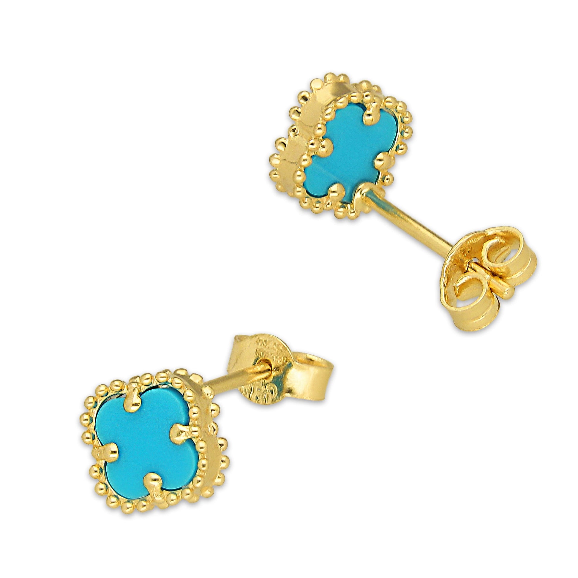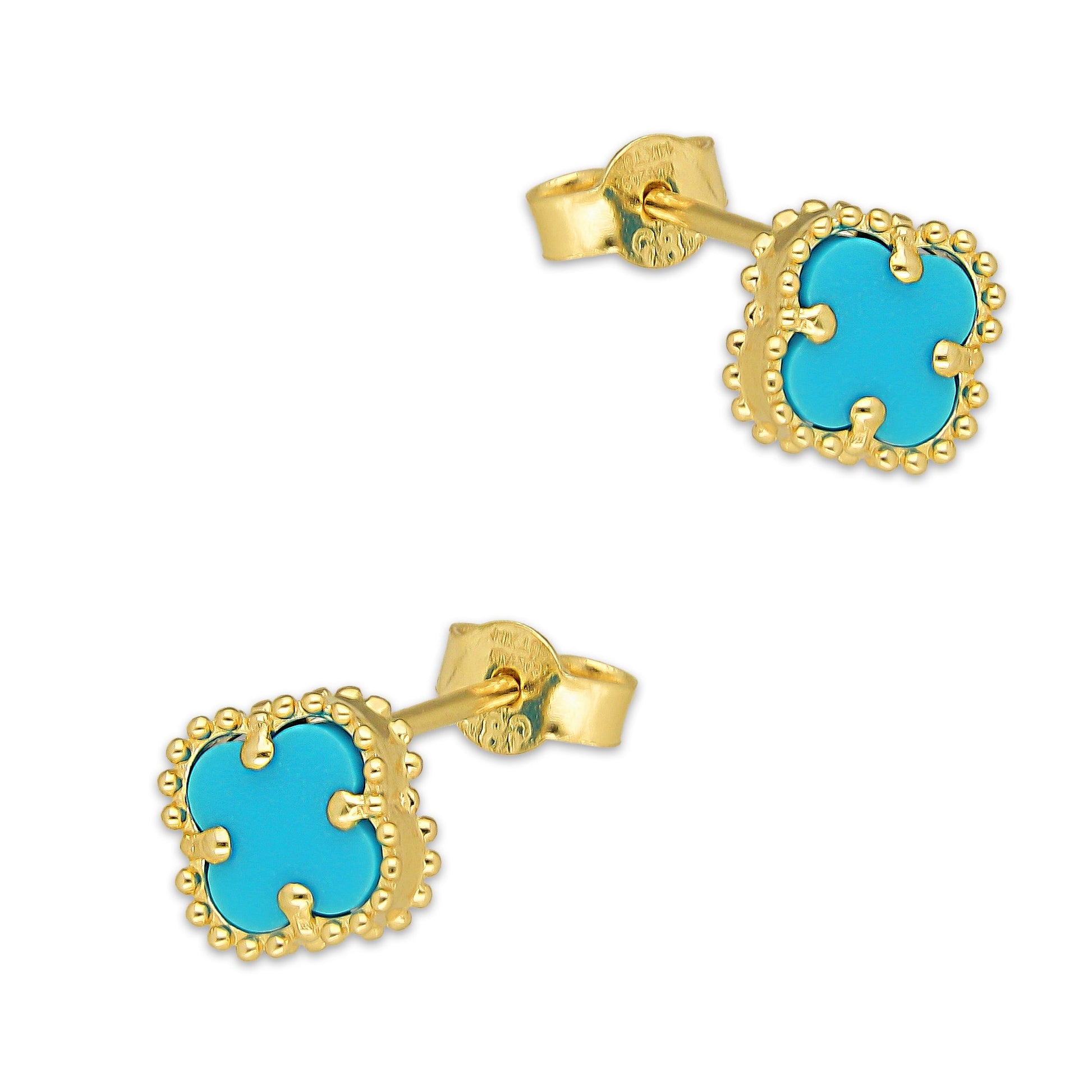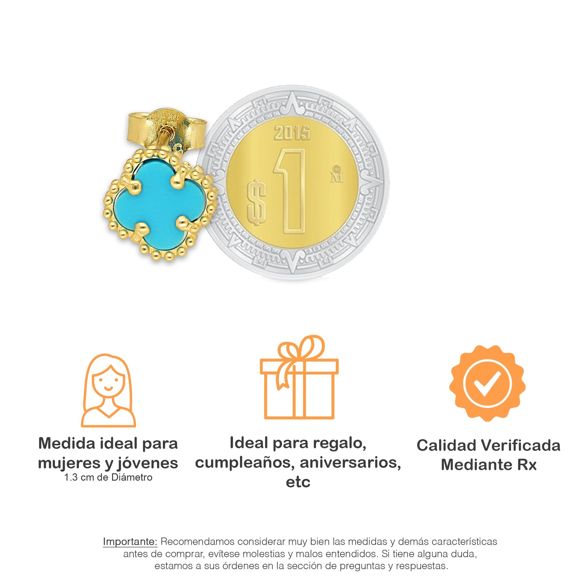 MR14AB026 Arete Broquel Oro Sólido 14K EMF14 Modelo Trébol 7 mm Azul Diámetro 1.3 cm