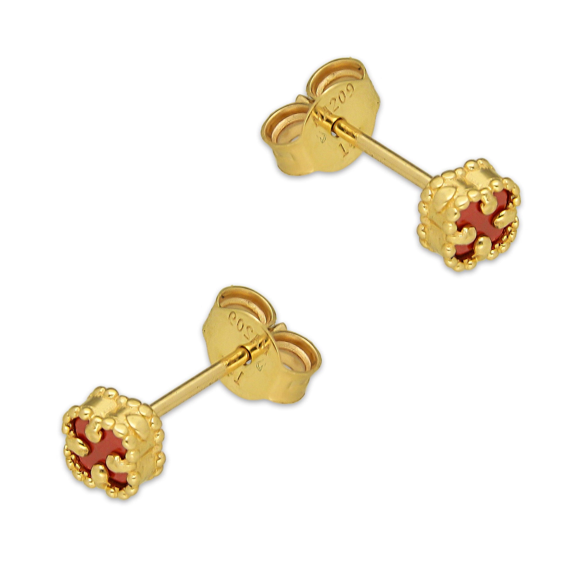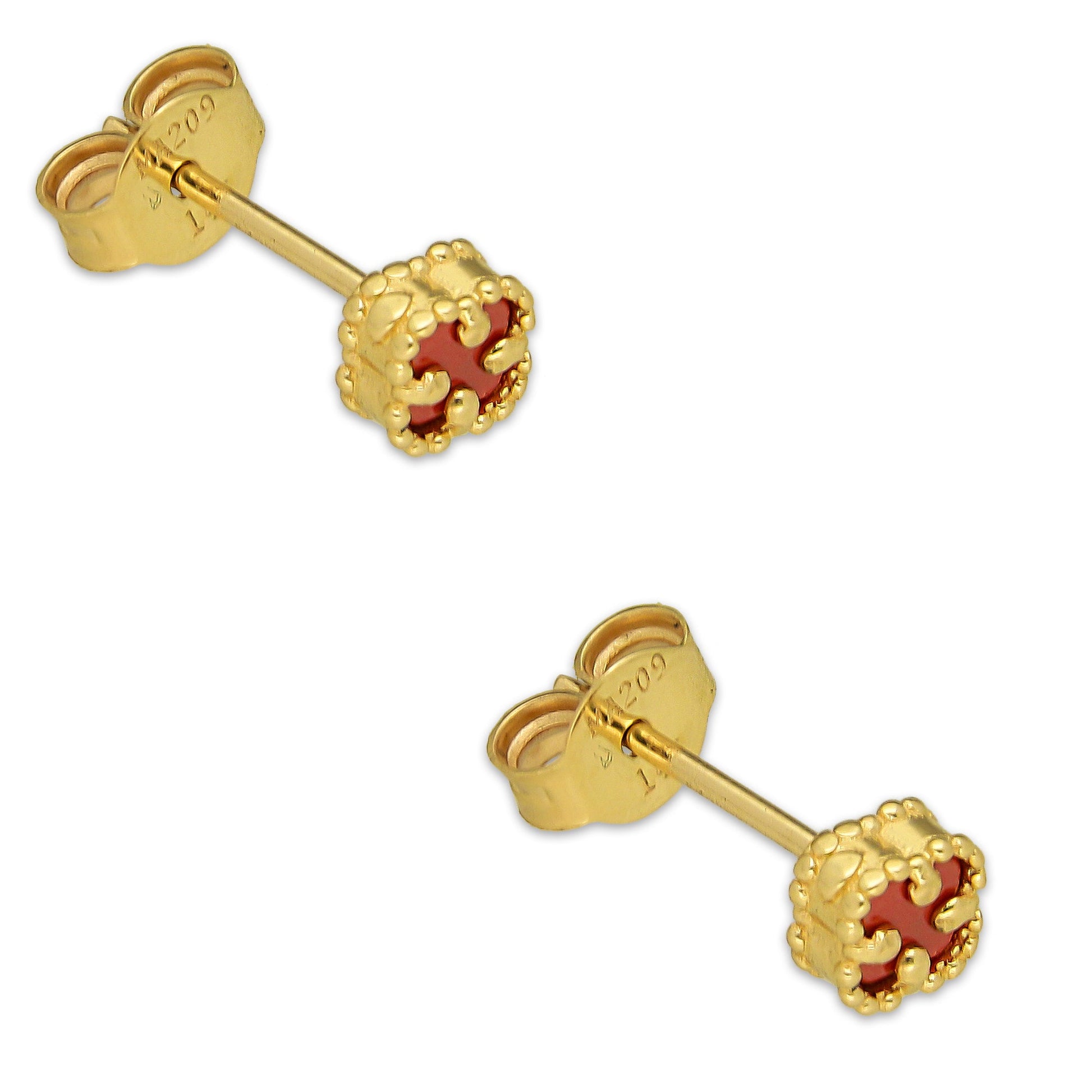 MR14AB028 Arete Broquel Oro Sólido 14K EMF14 Modelo Trébol 5 mm Rojo Diámetro 1.4 cm
