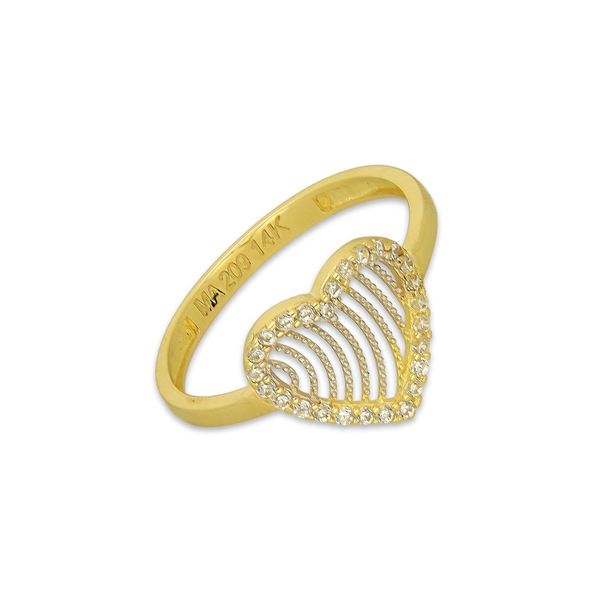 MR14AD041 Anillo Dama Oro Sólido 14K Modelo Corazón Ondas Filigrana con Zirconias