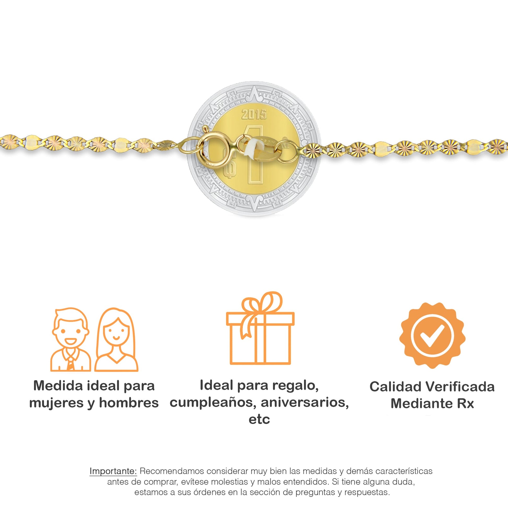 MR14CU020-45 Cadena Oro Sólido 14K Florentino EMC14 Modelo Ancla Diamantada 3 Eslabones Diamantados 1 Liso 2 mm x 45 cm