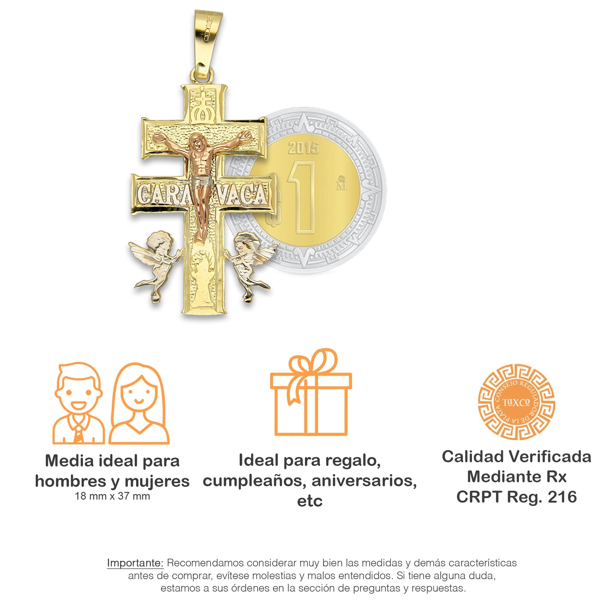 MR14DJ022 Dije Oro Sólido 14K Caravaca Cristo Cobrizo 1.8 x 3.7 cm