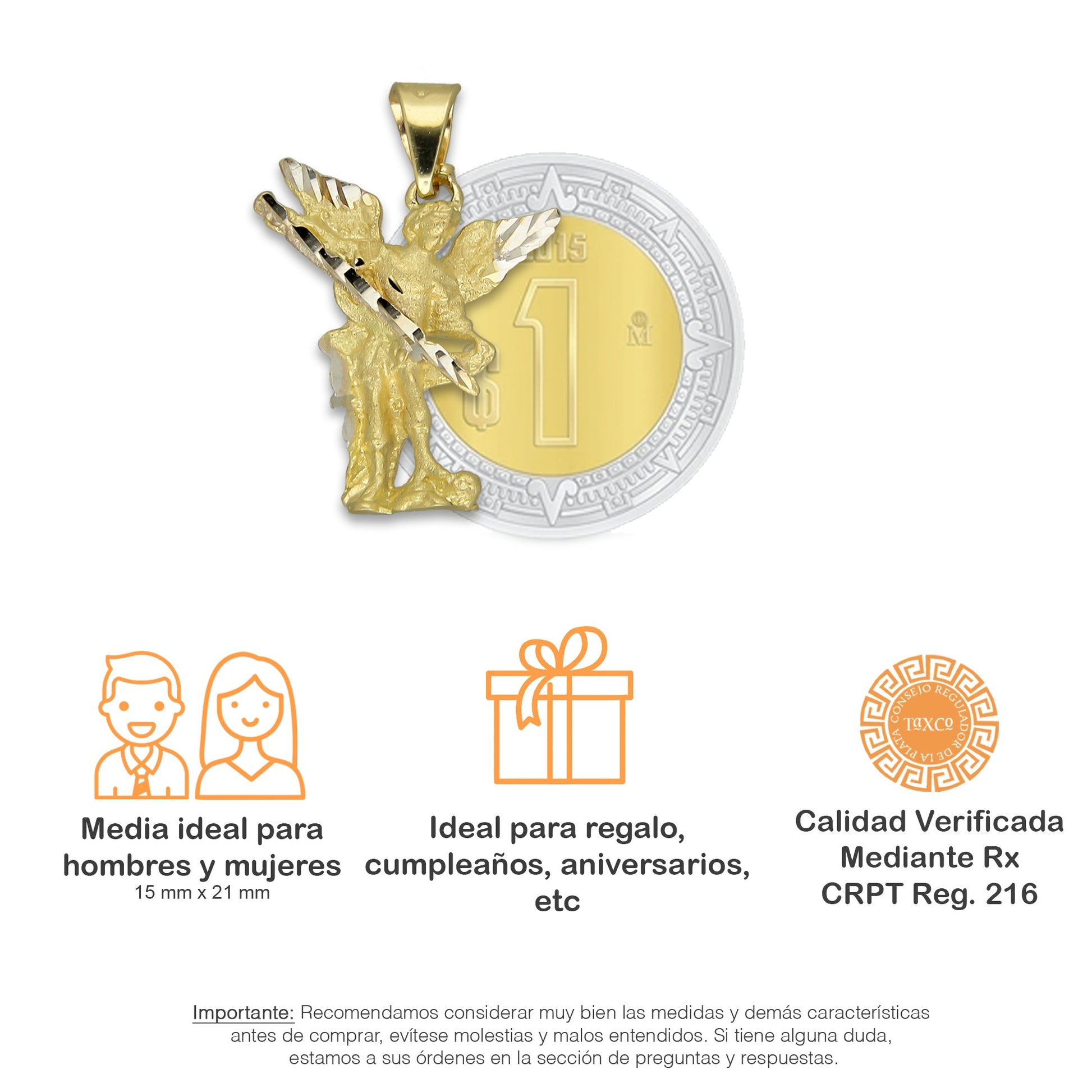 MR14DJ023 Dije Oro Sólido 14K San Miguel Arcangel Mini 1.5 x 2.1 cm