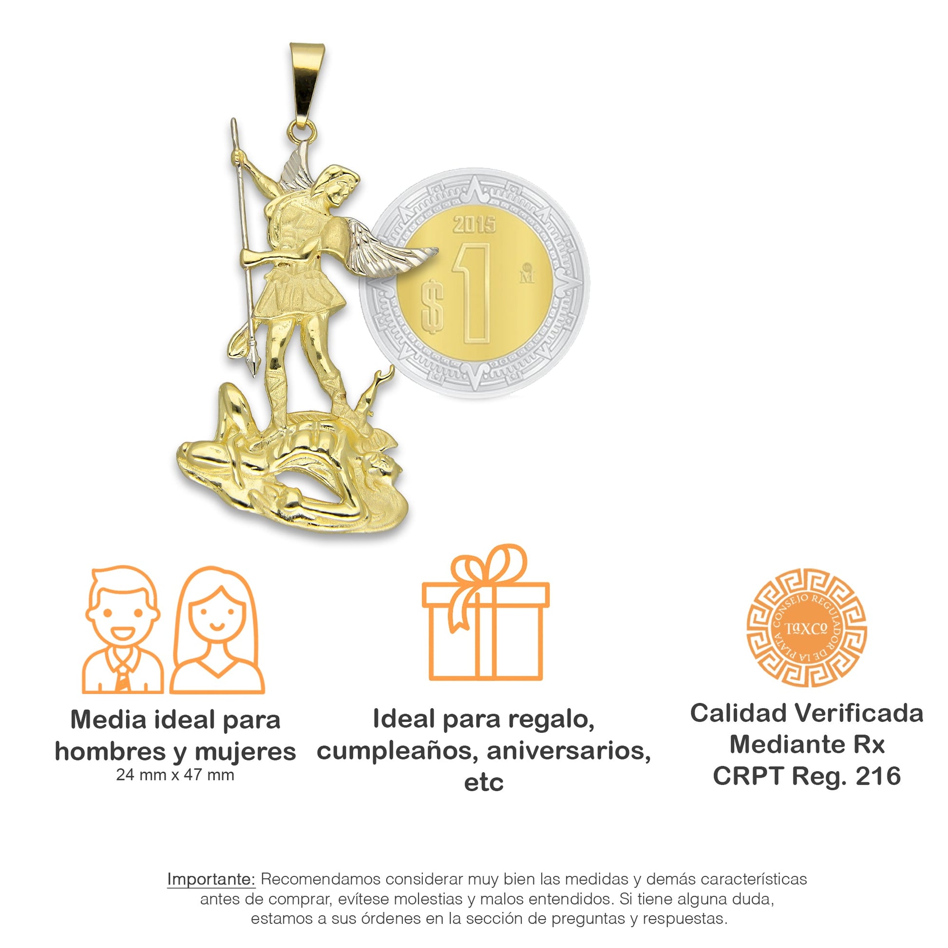 MR14DJ025 Dije Oro Sólido 14K San Miguel Arcangel Grande 2.4 x 4.7 cm
