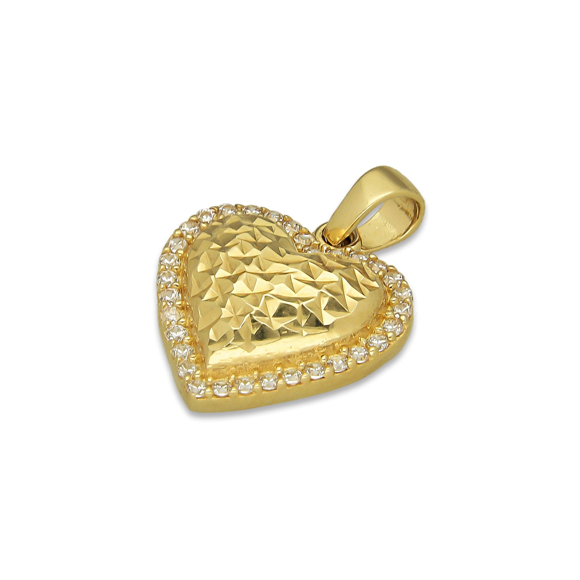 MR14DJ055 Dije Oro Sólido 14K Corazón Orillas con Zirconias 1.4 cm x 1.8 cm