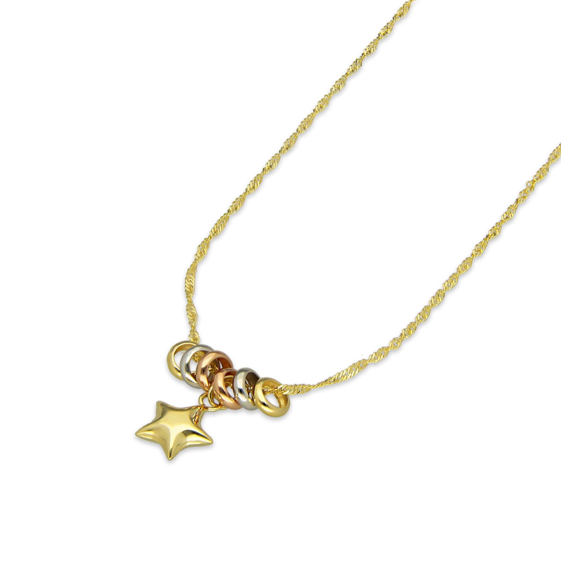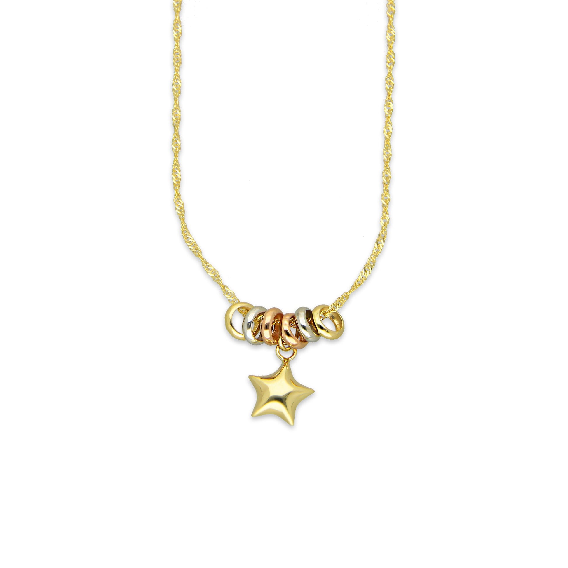 MR14G011 Gargantilla Para Dama Oro Sólido 14K EMF14 Súper Ligera Fantasy Mod Aritos Florentinos Estrella 45 cm