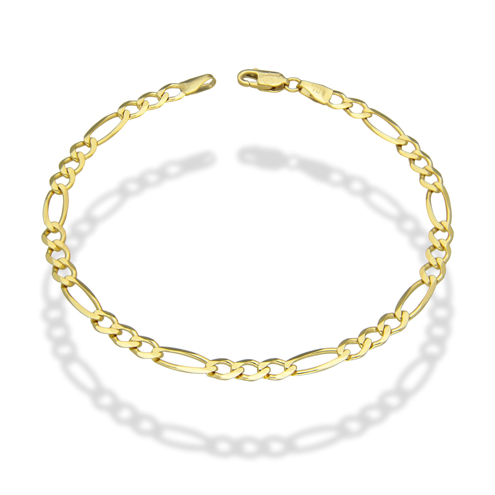 MR14PC003 Pulsera Para Caballero Oro Sólido 14K Figaro 3*1 4.5 Mm x 21 Cm