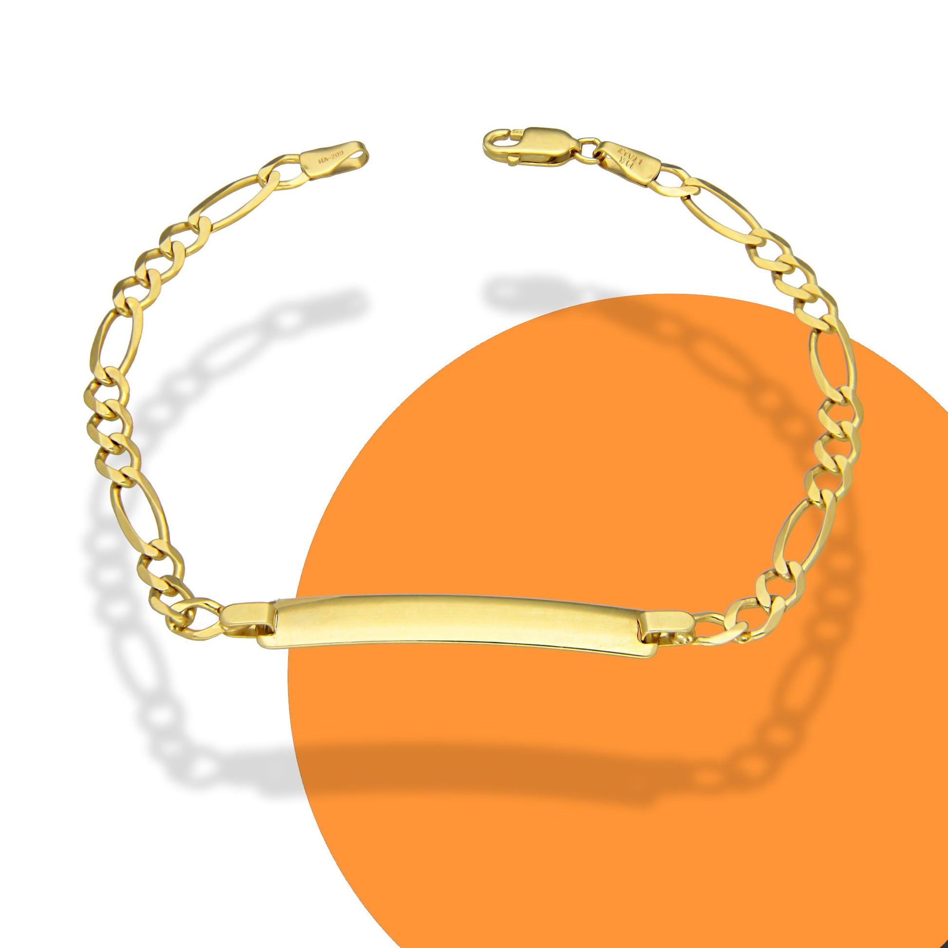 MR14PC009 Pulsera Esclava Para Caballero Oro Sólido 14K Figaro 3*1 Lisa 4.5 Mm x 21 Cm
