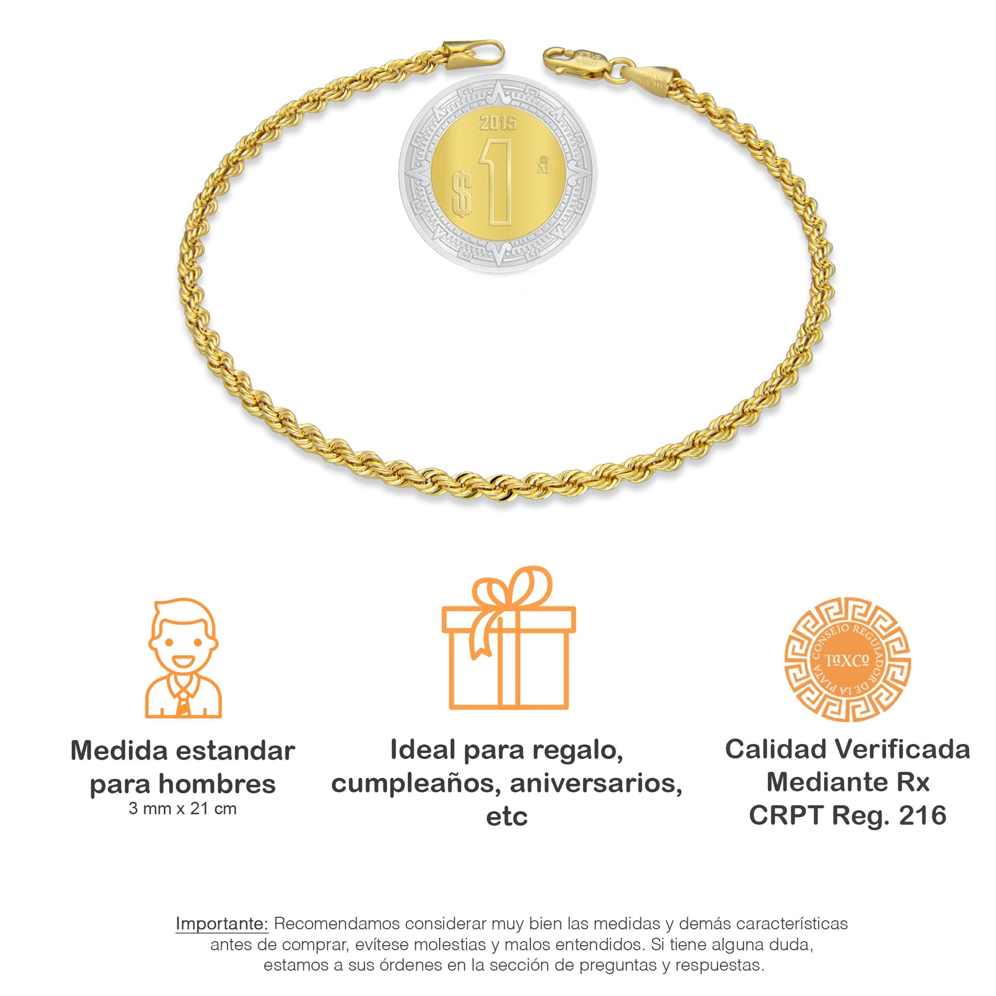 MR14PC012 Pulsera Para Caballero Oro Sólido 14K Torsal Lisa Super Ligera 3 mm x 21 cm