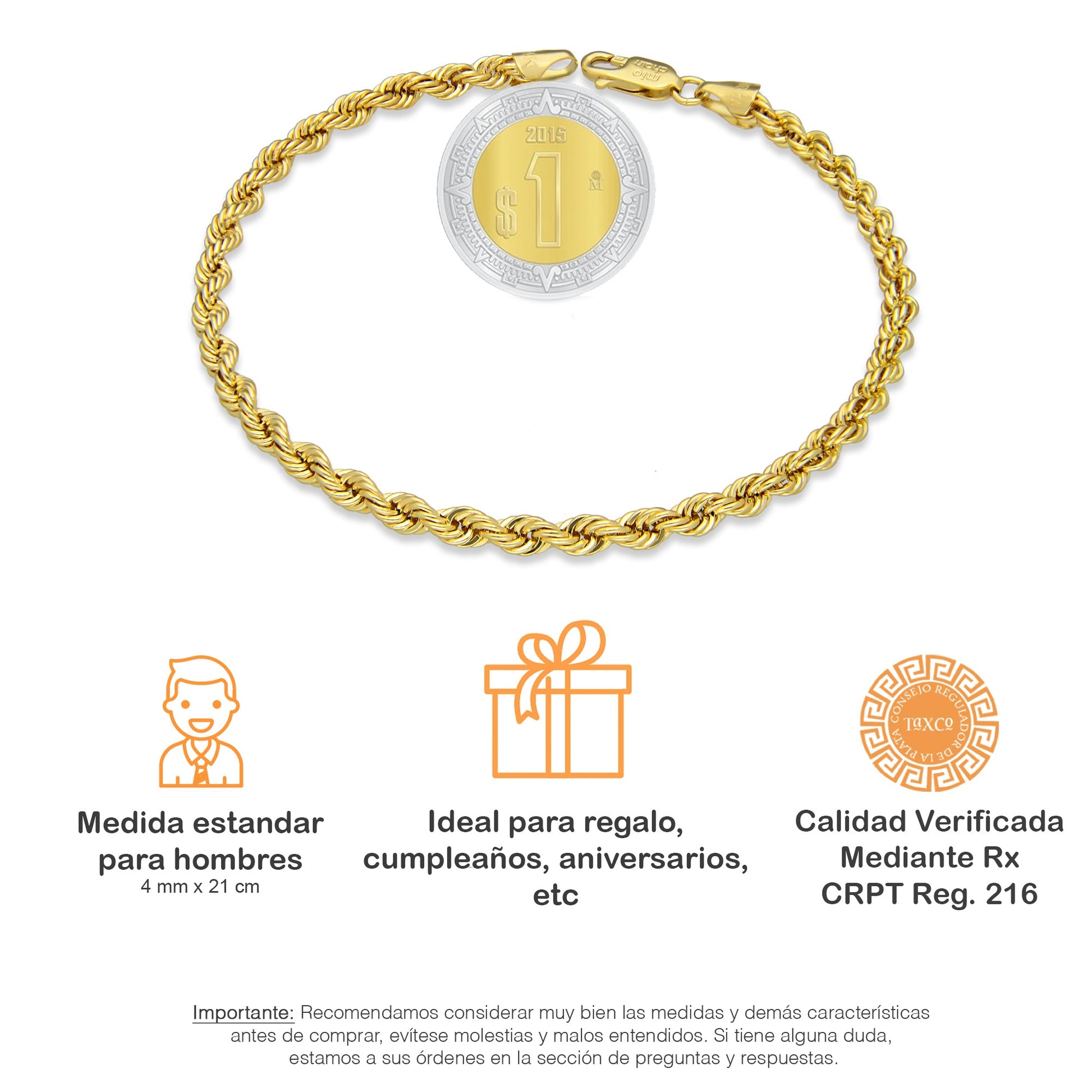 MR14PC014 Pulsera Para Caballero Oro Sólido 14K Torsal Lisa Super Ligera 4 mm x 21 cm