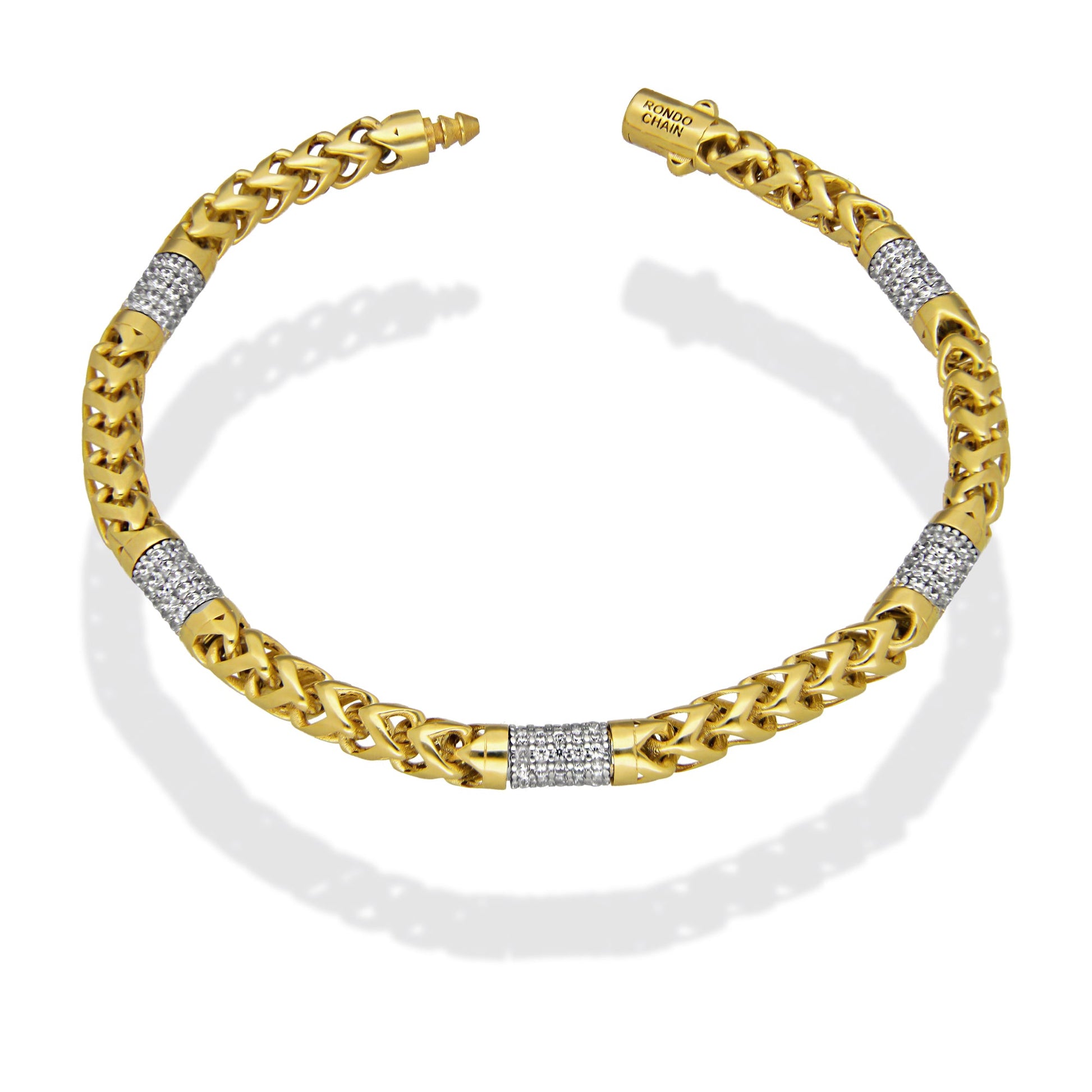 MR14PC024 Pulsera Para Caballero Oro Sólido 14K Mónaco Chain Mod Rondo con Zirconias 5 mm x 20.5 cm