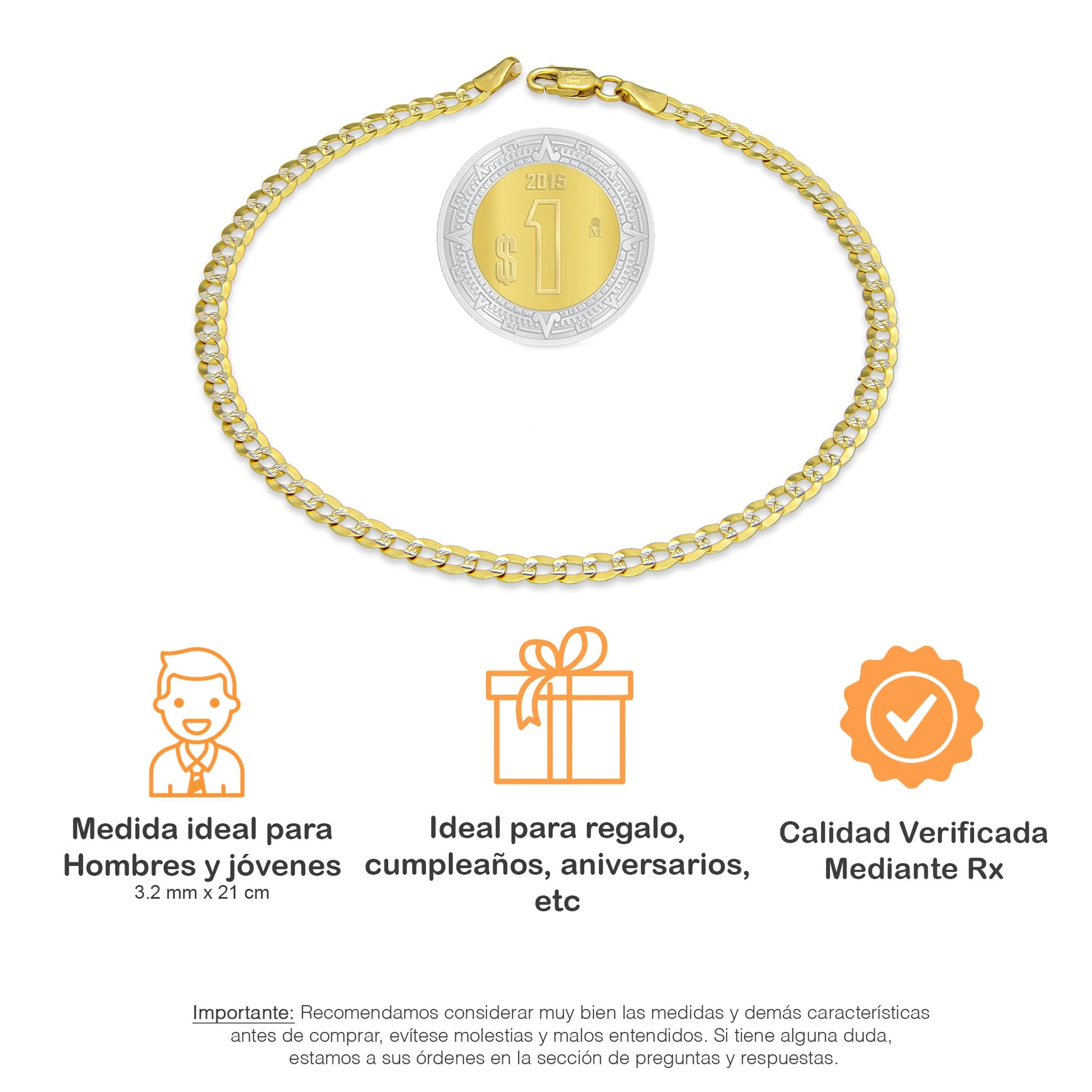 MR14PC027 Pulsera Para Caballero Oro Sólido 14K EMC14 Modelo Fígaro 1*0 Diamantada 3.2 mm x 21 cm