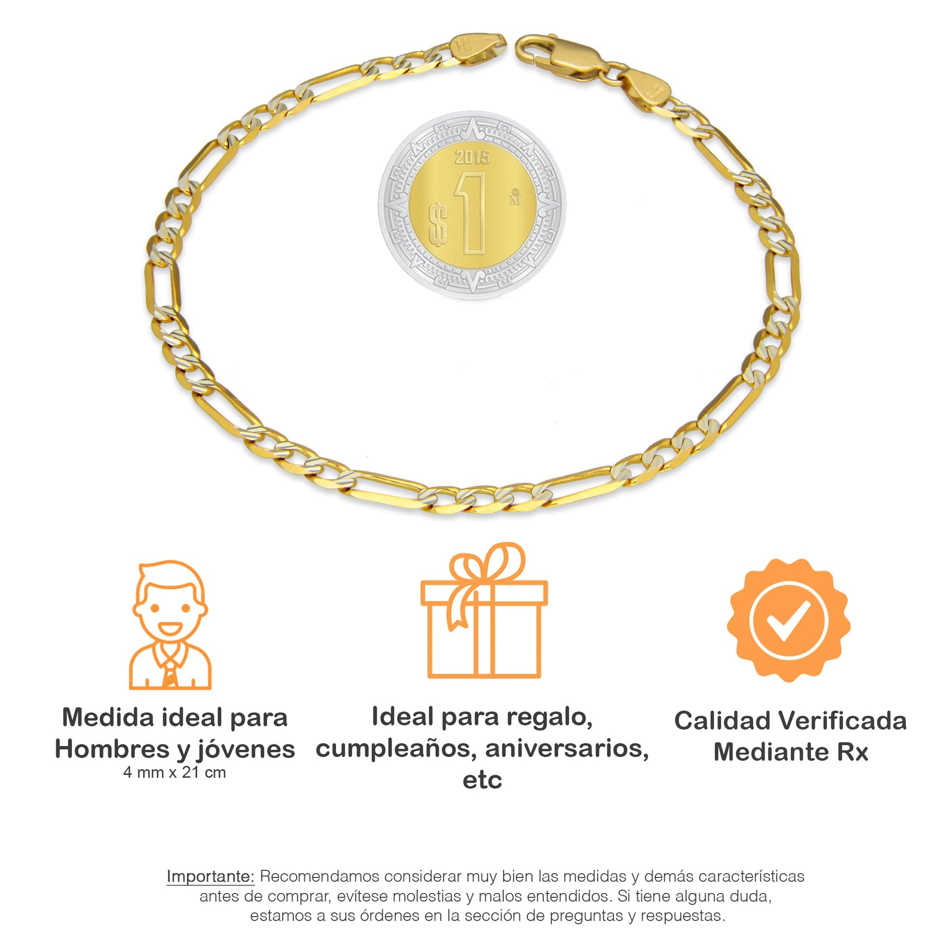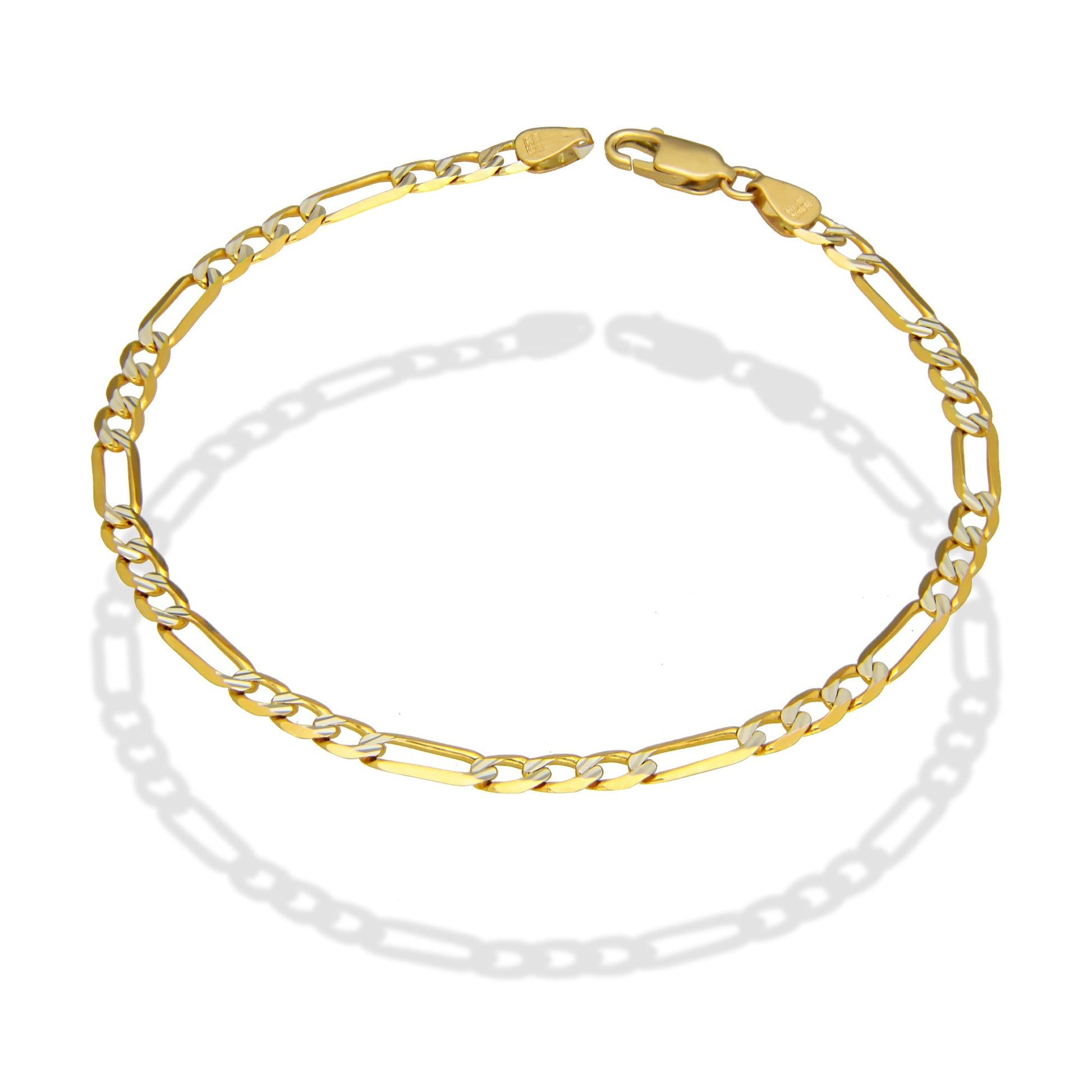MR14PC029 Pulsera Para Caballero Oro Sólido 14K EMC14 Modelo Fígaro 3*1 Segrinado Diagonal 4 mm x 21 cm