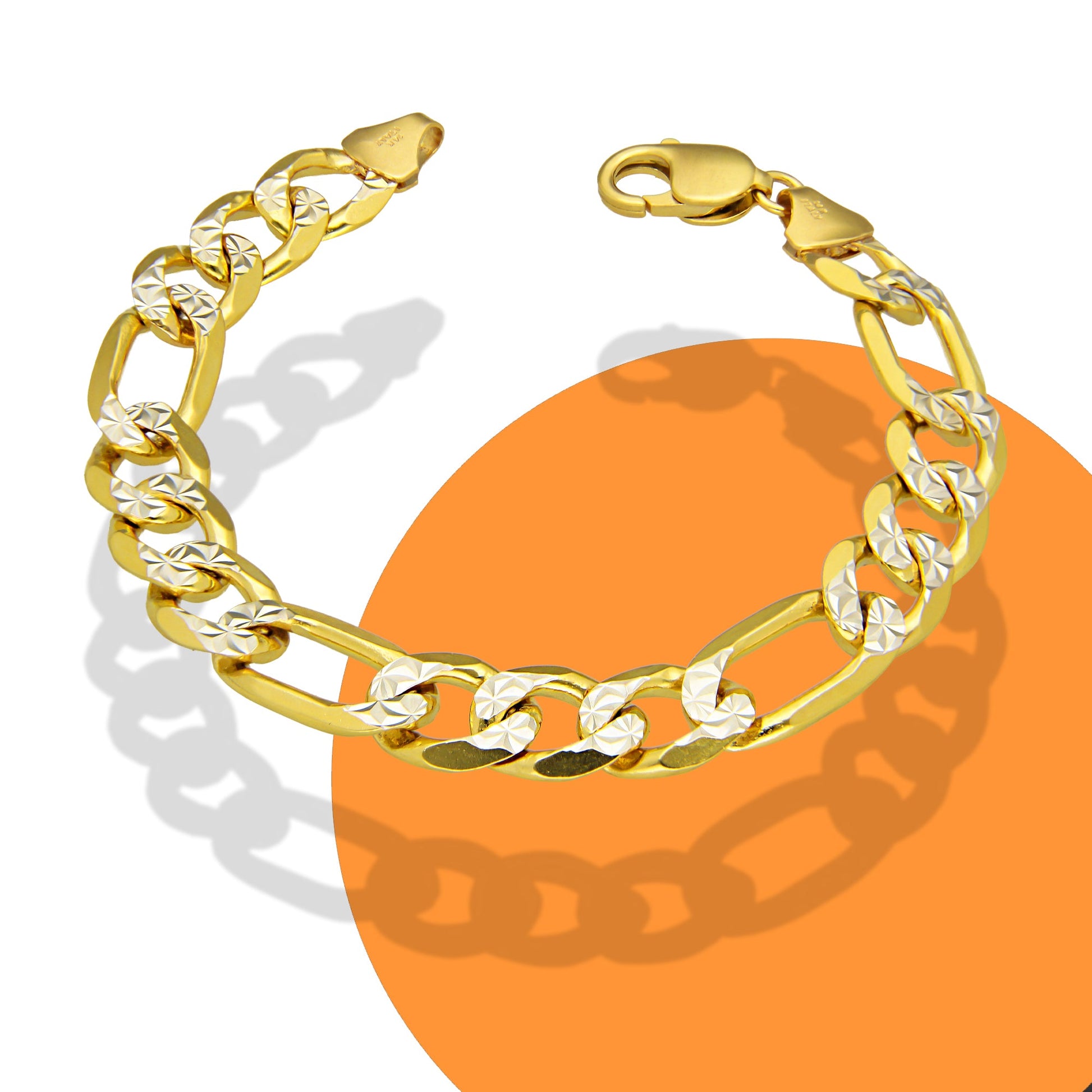 MR14PC038 Pulsera Para Caballero Oro Sólido 14K Mod Fígaro 3*1 Diamantada 11 mm x 21 cm