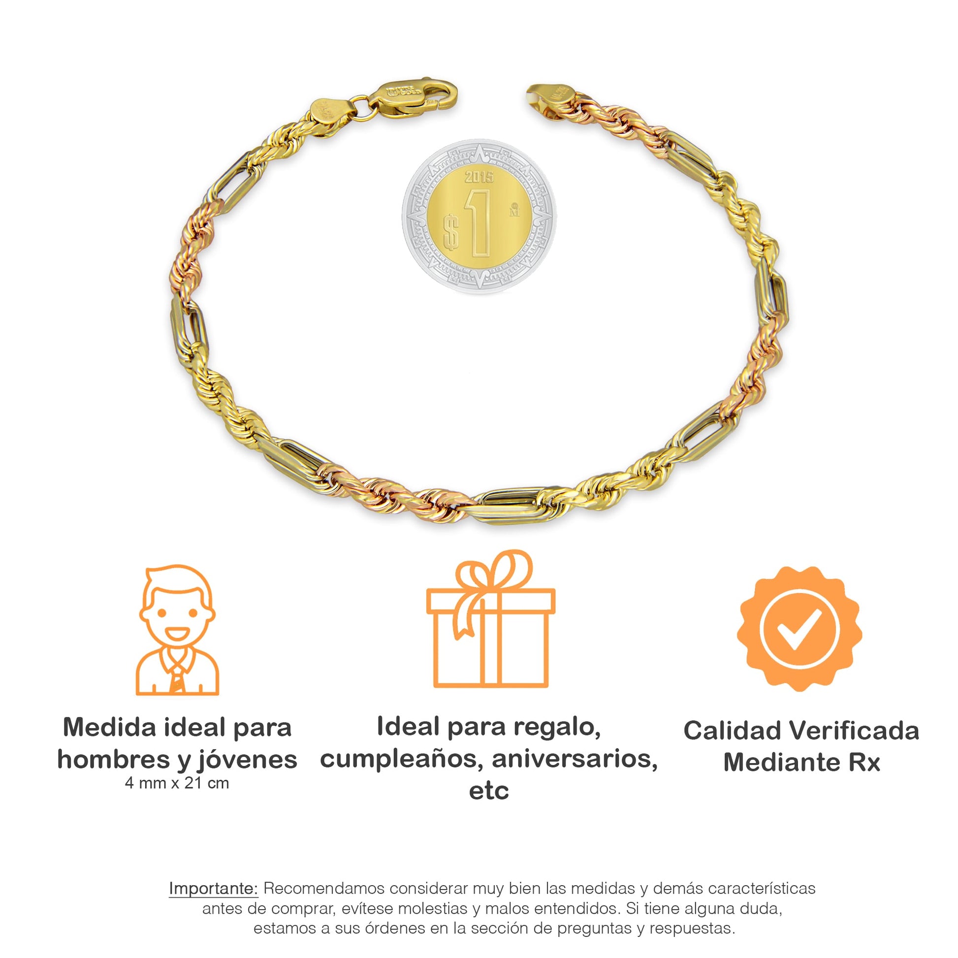 MR14PC055 Pulsera Para Caballero Oro Sólido 14K EMF14 Modelo Torsal Fígaro Florentino 4 mm x 21 cm