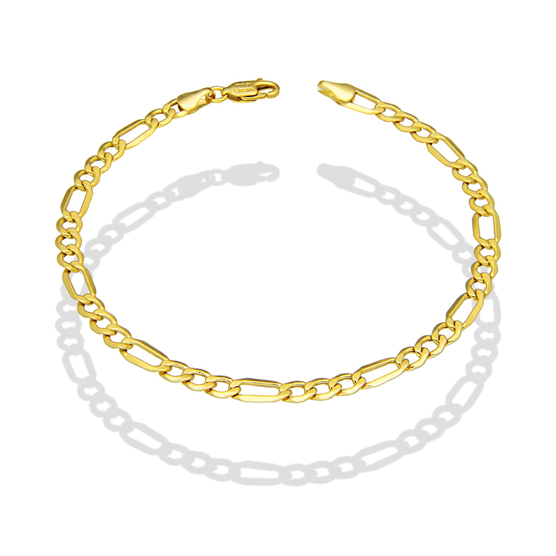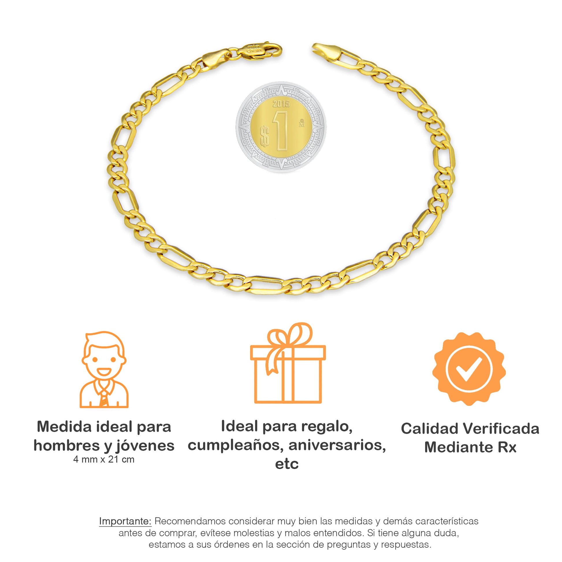 MR14PC058 Pulsera Para Caballero Oro Sólido 14K EMF14 Modelo Fígaro 3*1 Lisa 4 mm x 21 cm