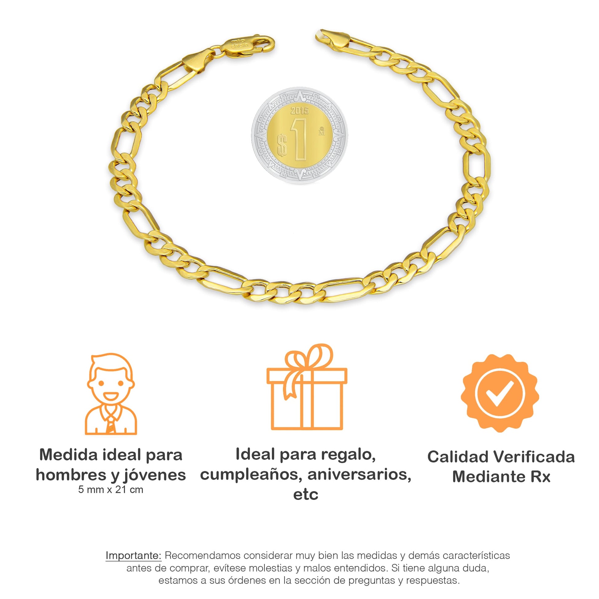 MR14PC059 Pulsera Para Caballero Oro Sólido 14K EMF14 Modelo Fígaro 3*1 Lisa 5 mm x 21 cm