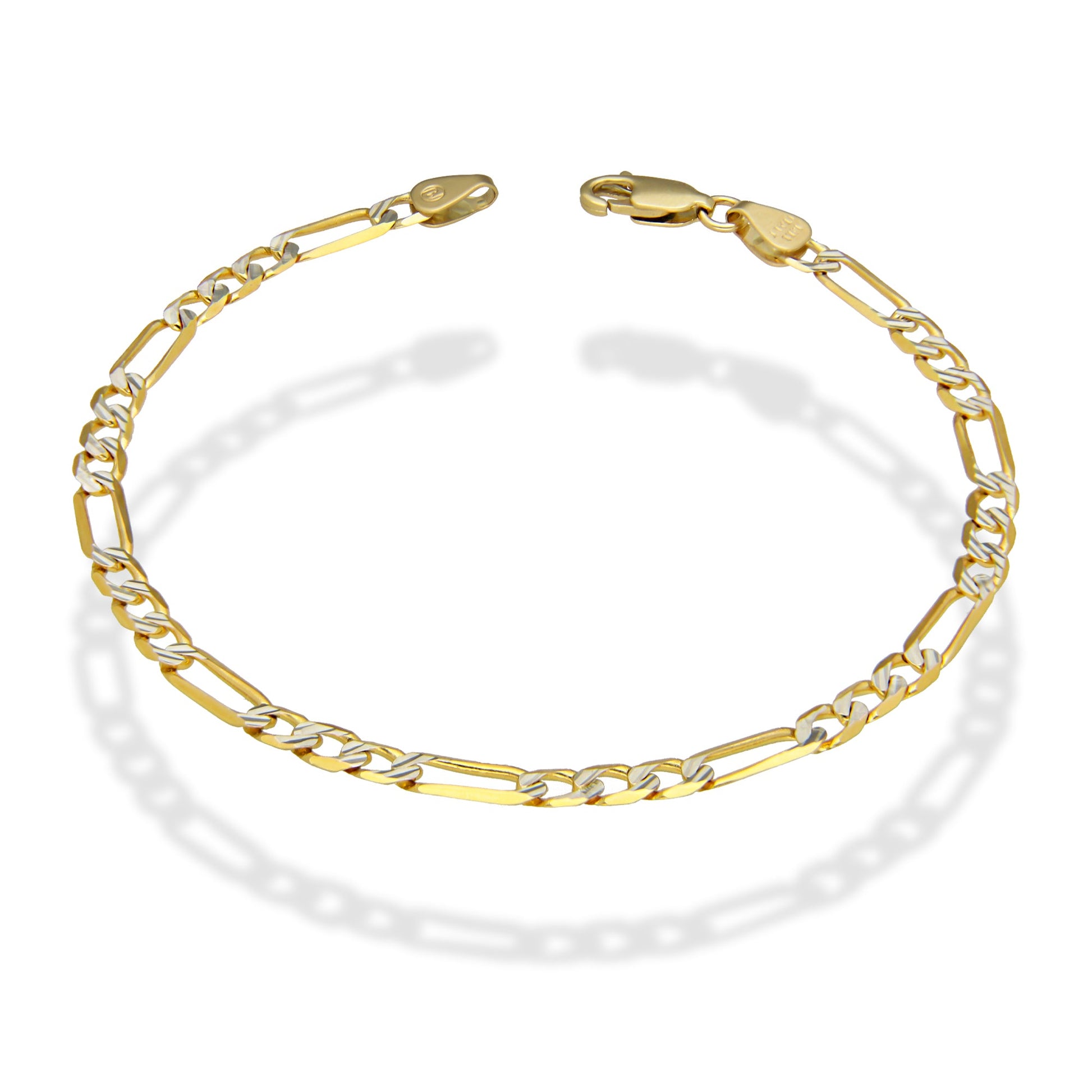 MR14PD023 Pulsera Dama Oro 14K Figaro Diamantada 3*1 4 Mm x 19 Cm