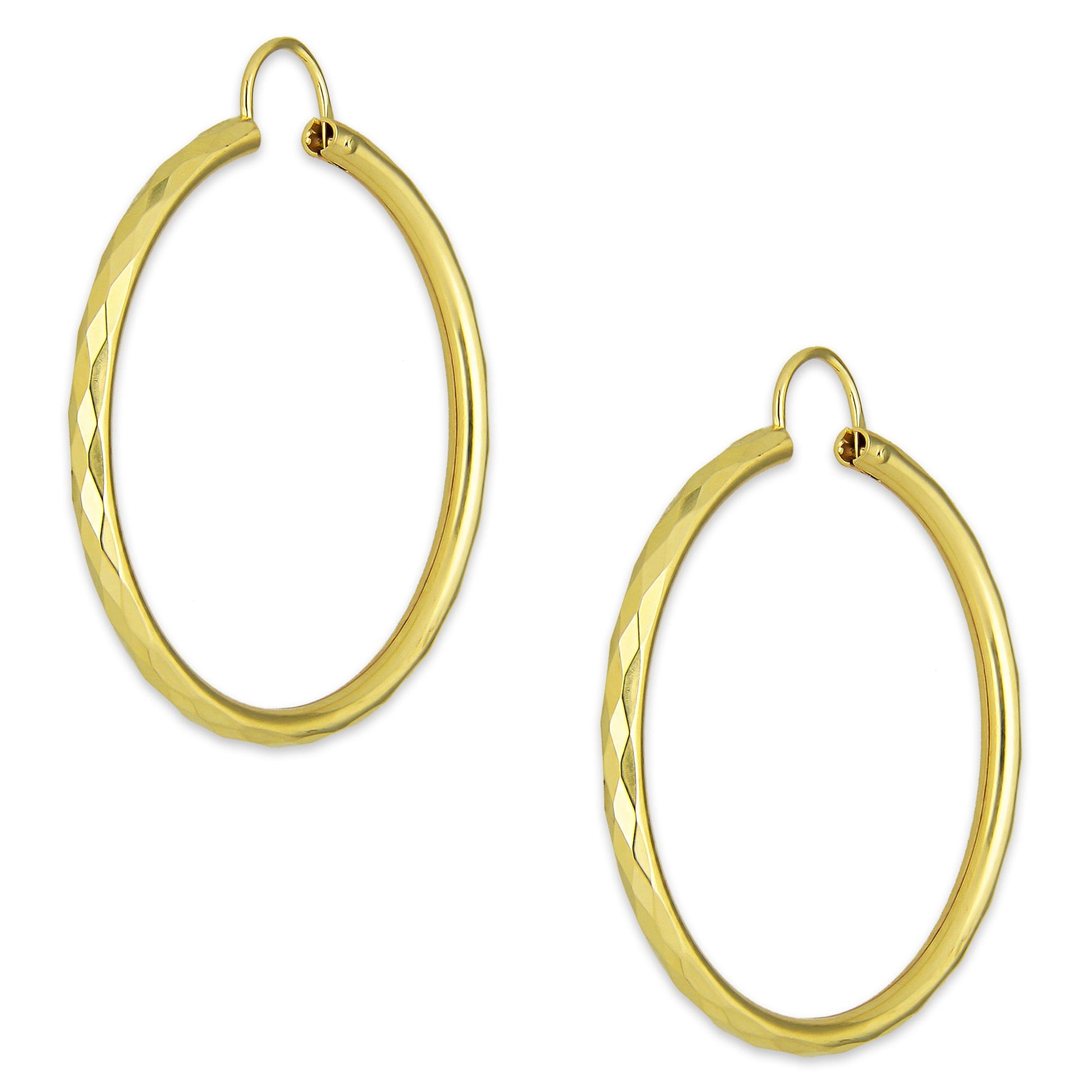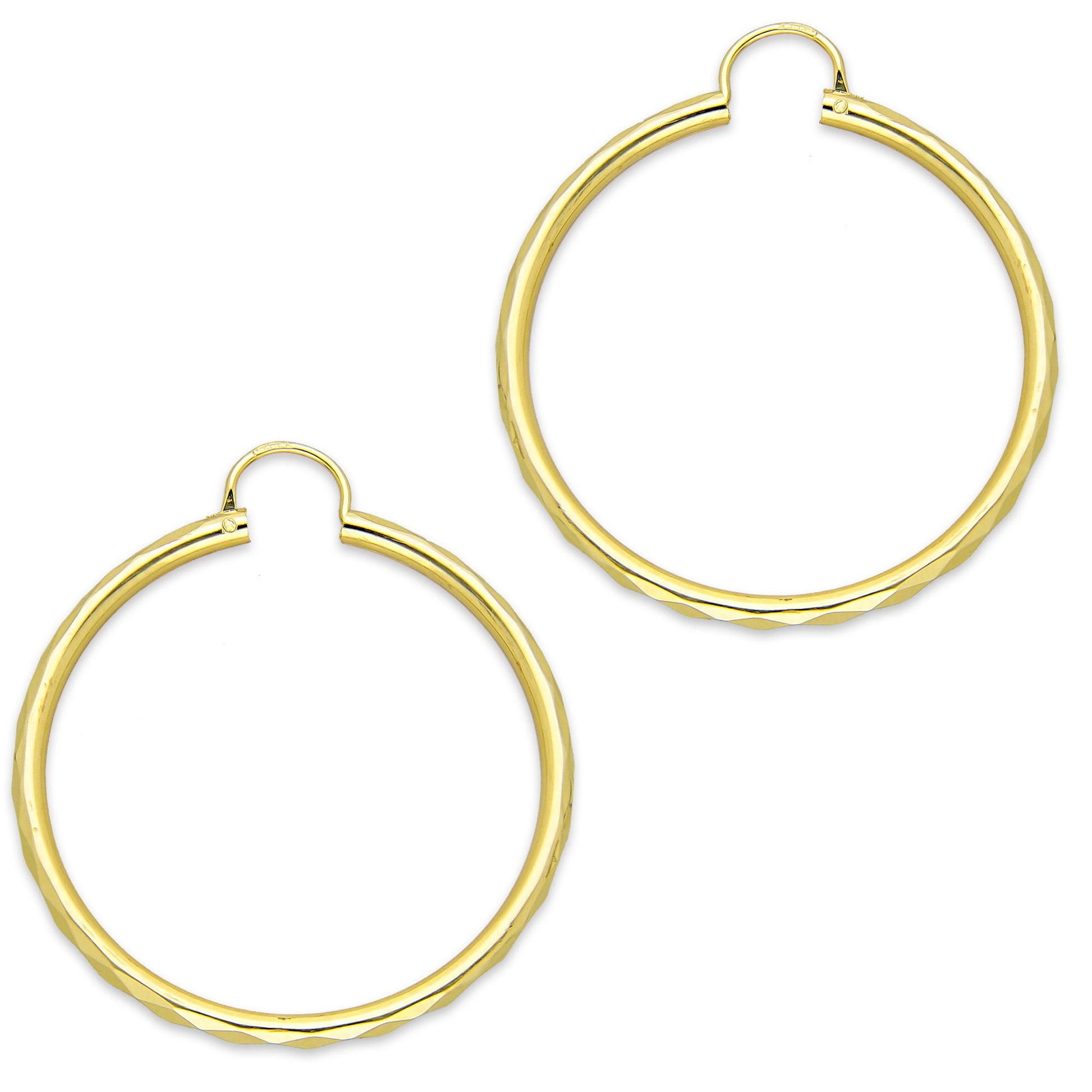 NR14AR034 Arete Arracada Oro Sólido 14K Facetada Tubo 2.5 mm Diámetro 3.6 cm