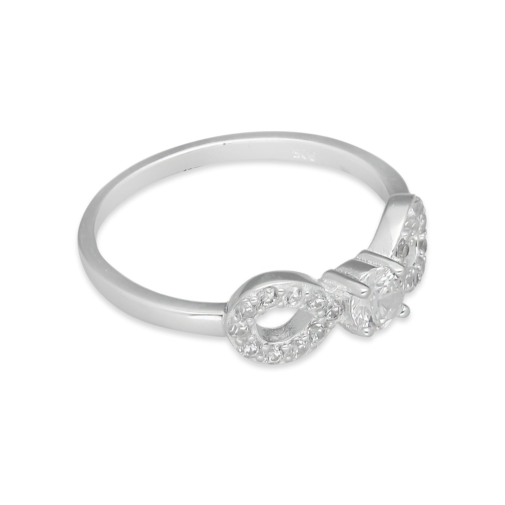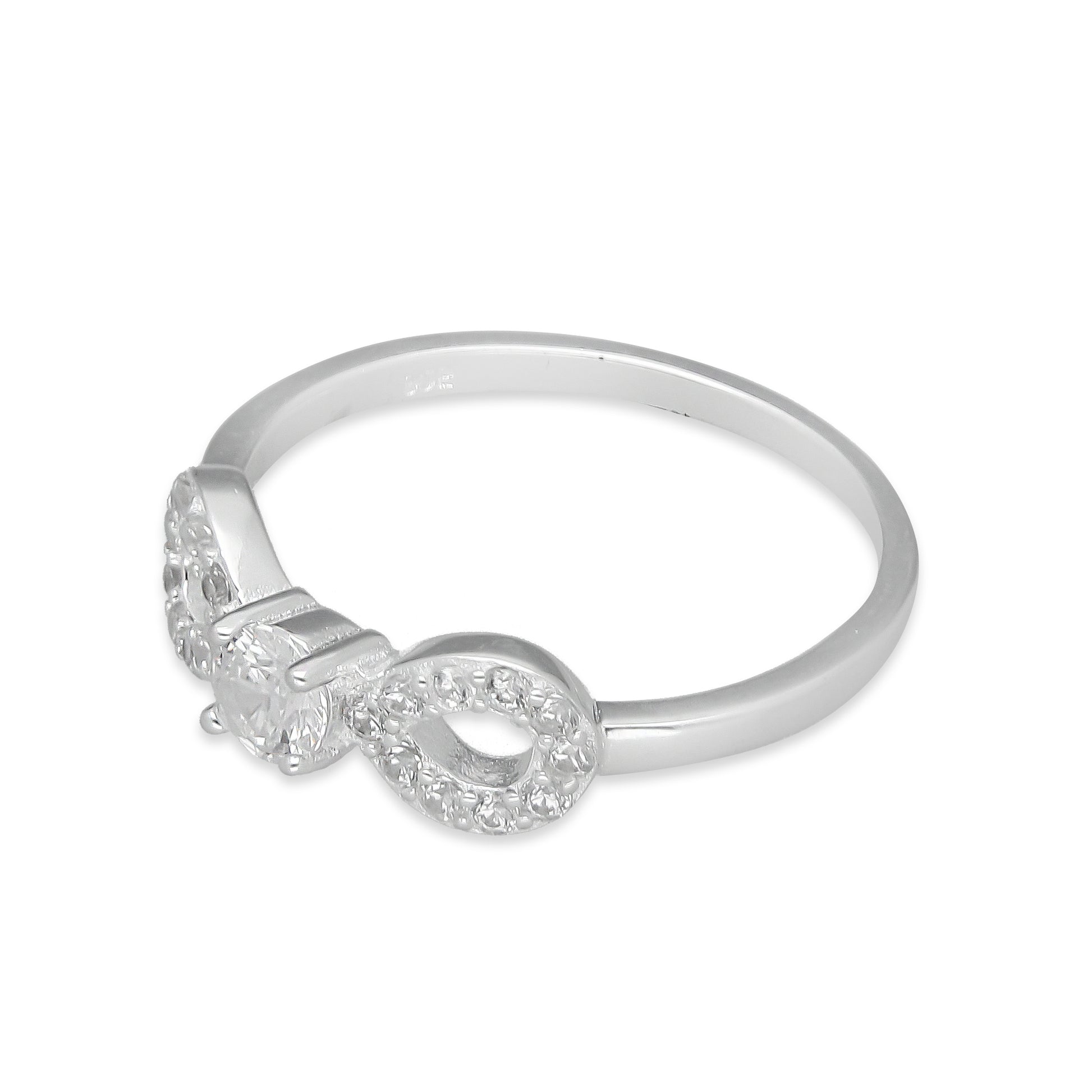 TMPAD008 Anillo de Infinito con Zirconia al Centro en Plata Fina.925